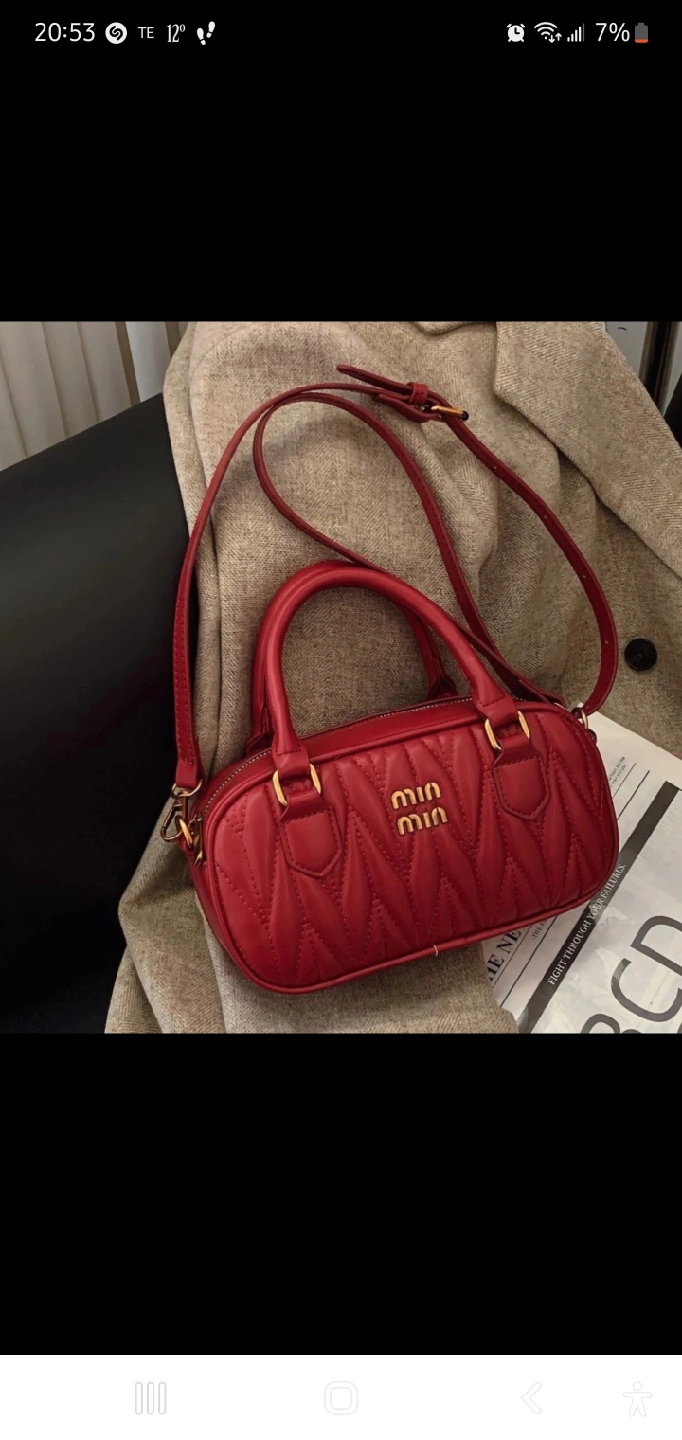 Selling a stylish handbag in a vibrant red colour! This leather bag features a unique quilted design. Perfect for adding a pop of colour to your outfit!