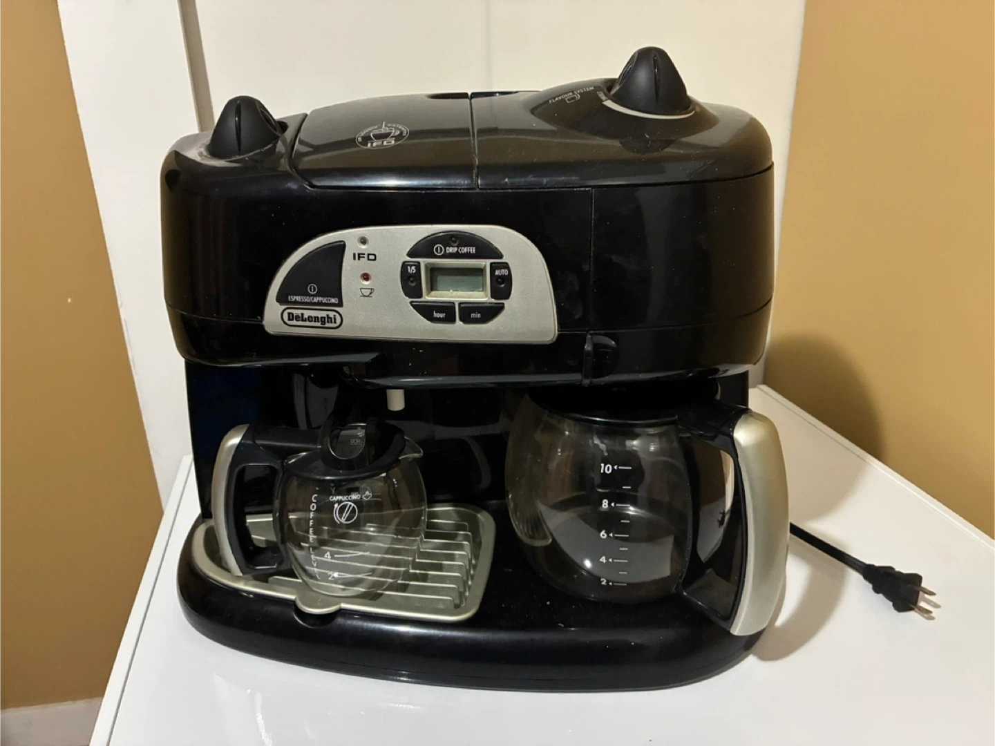 25Selling a DeLonghi Espresso/Cappuccino and Drip Coffee maker! It features an IFD system and an auto function. The glass carafe has measurements up to 10 cups. Great for coffee lovers!