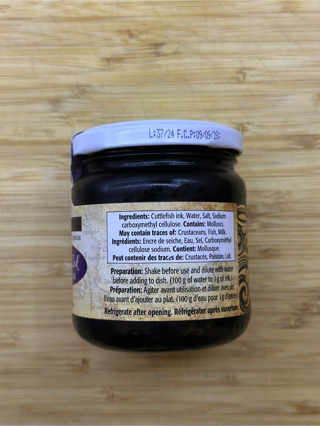 - Ingredients: Cuttlefish ink, water, salt, sodium carboxymethyl cellulose