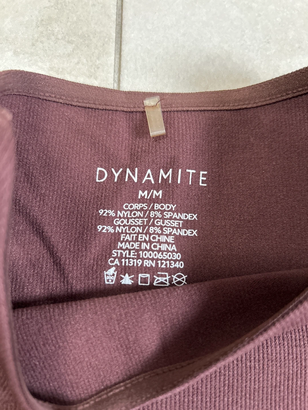 Selling a Dynamite bodysuit in a lovely brown colour. It's a size M. The material is 92% nylon and 8% spandex, so it's nice and stretchy!