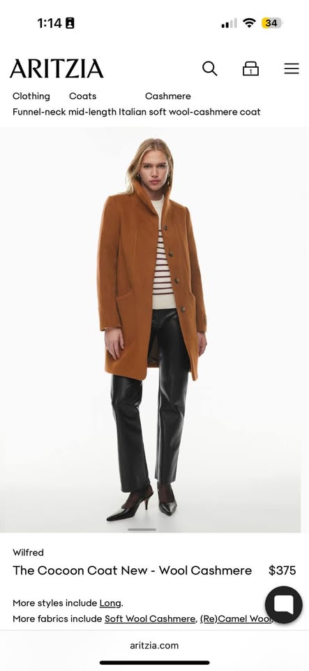 Aritzia Cocoon Coat - Wool Cashmere Size 2XS