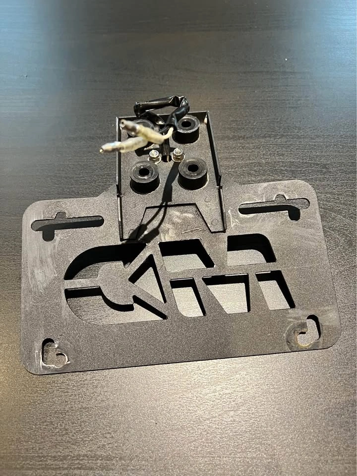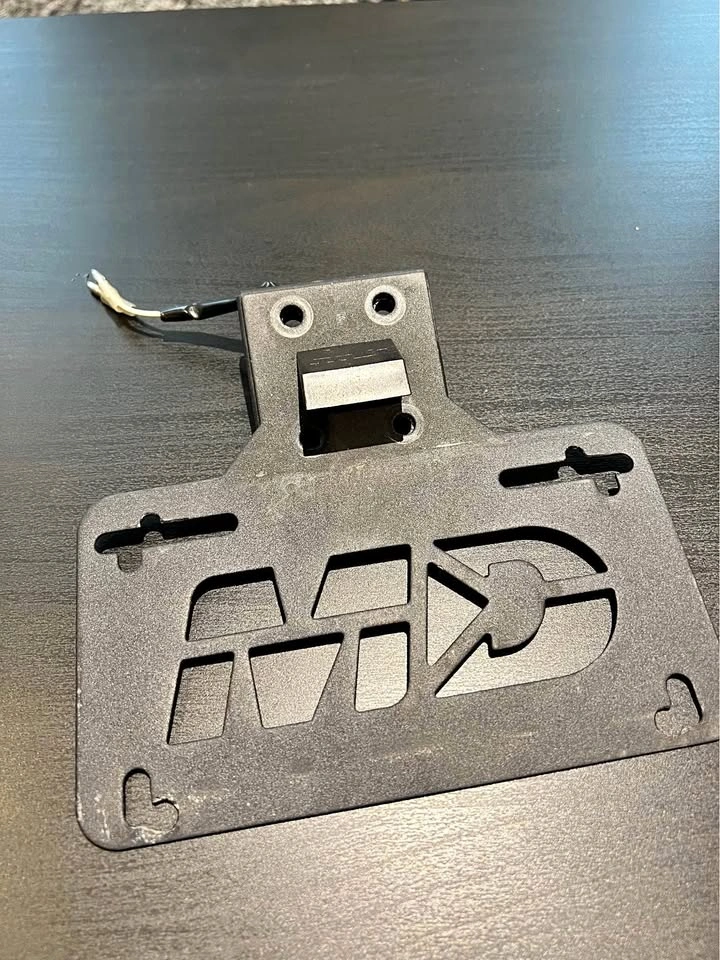 60Moto Dynamics plate holder for R[hidden information] with LED light. Not sure if fit newer models. Low profile and good looking. Slightly modified.