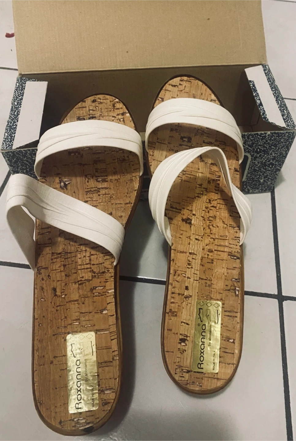 Selling a pair of Roxanna Italy sandals! These are a size 41, which is about a US women's size 10. They feature a cork footbed and white straps. Comes with the original box!