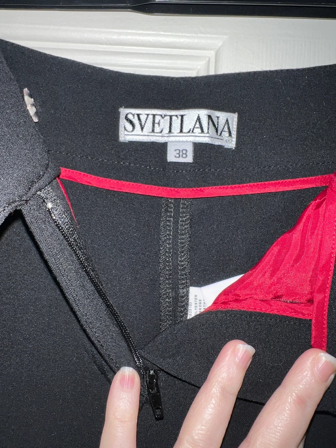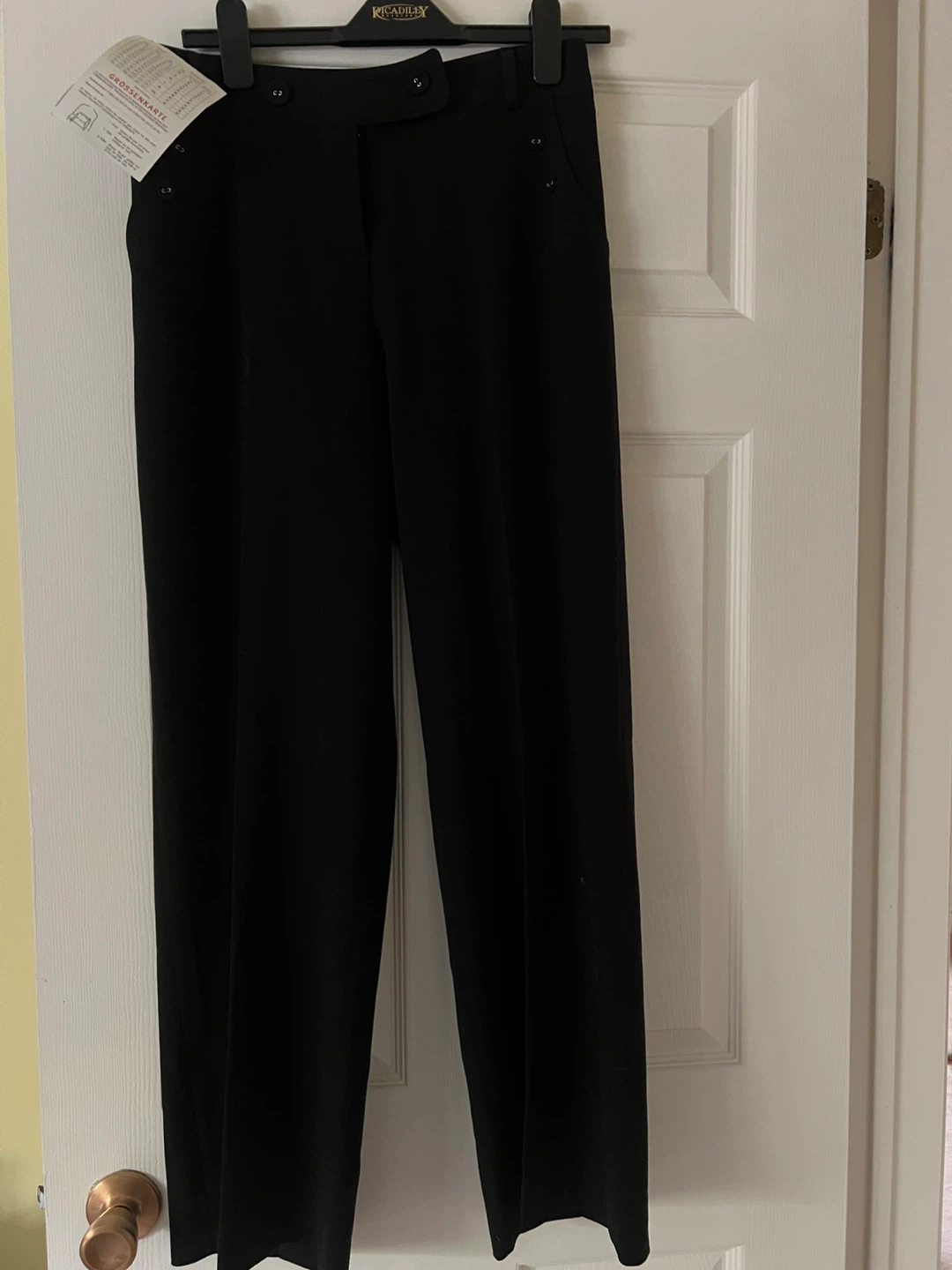 Selling a pair of Svetlana dress pants in size 38! They're a classic black colour, perfect for any occasion. The material feels great and they're in good condition. A stylish and versatile addition to your wardrobe!