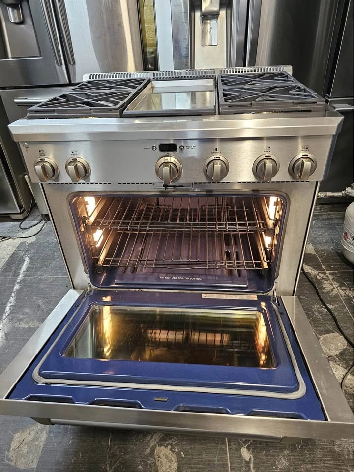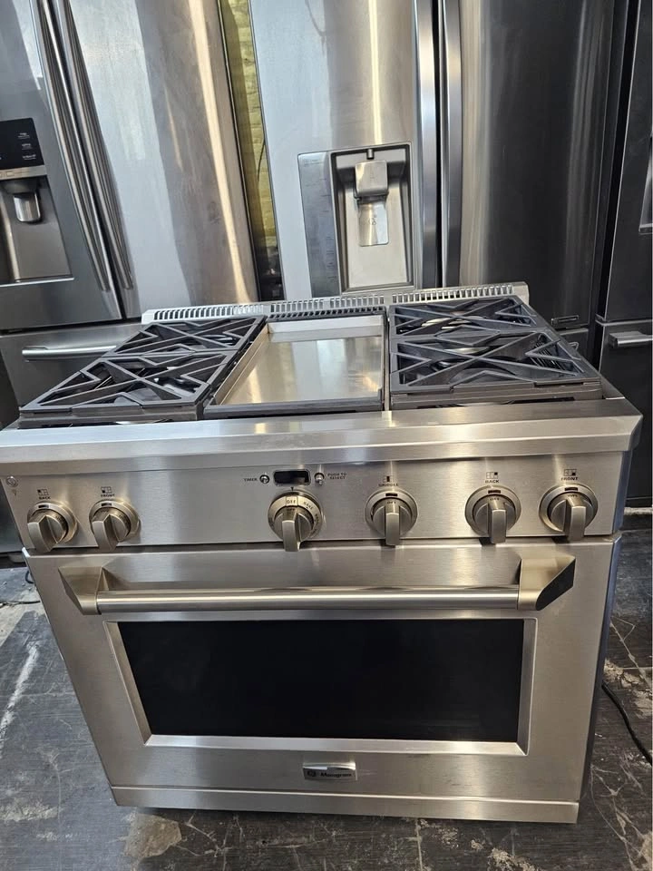 Set fridge and stove monogram silver excellent conditions almost new, 36 inch refrigerator, 36 wide stove