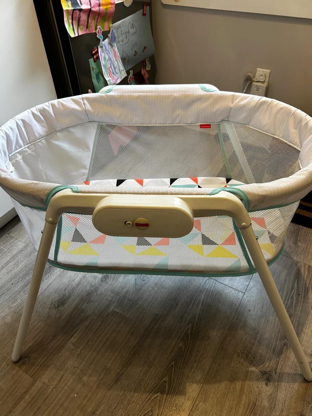 Selling a Fisher-Price Stow’n Go Bassinet! It's in great condition and includes all the parts, plus the travel bag. Perfect for keeping your little one comfy and close by.