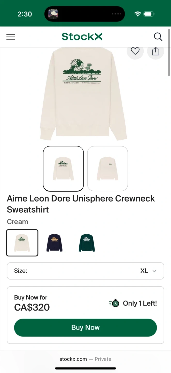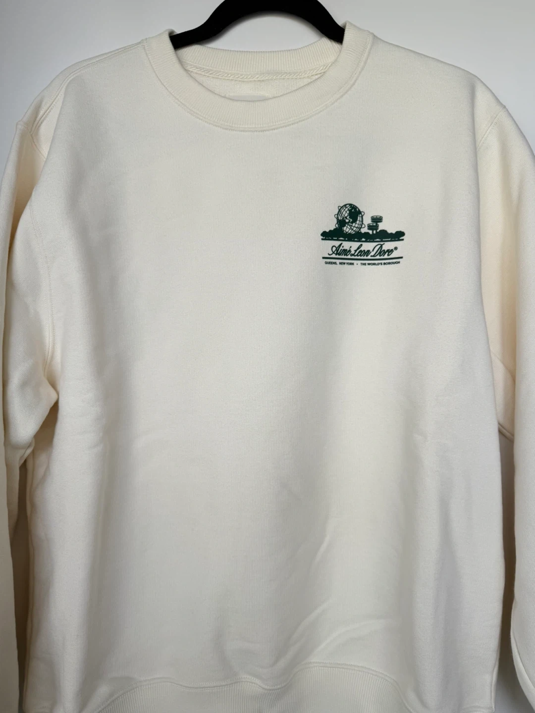 Price is firm this is an exclusive! Selling a gently used Aime Leon Dore Unisphere crewneck sweatshirt in cream, worn once. size L This stylish sweatshirt features the iconic Unisphere design. Originally bought for CA$320.