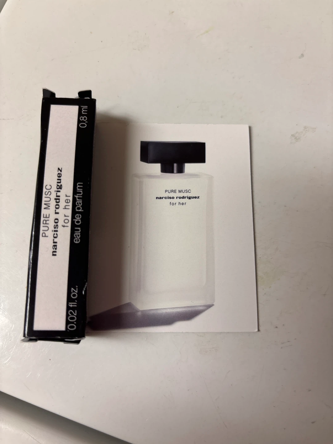 Selling a sample size of Narciso Rodriguez Pure Musc for Her Eau de Parfum. It's a 0.02 fl oz (0.8 ml) sample size, perfect for trying out the scent before committing to a full bottle