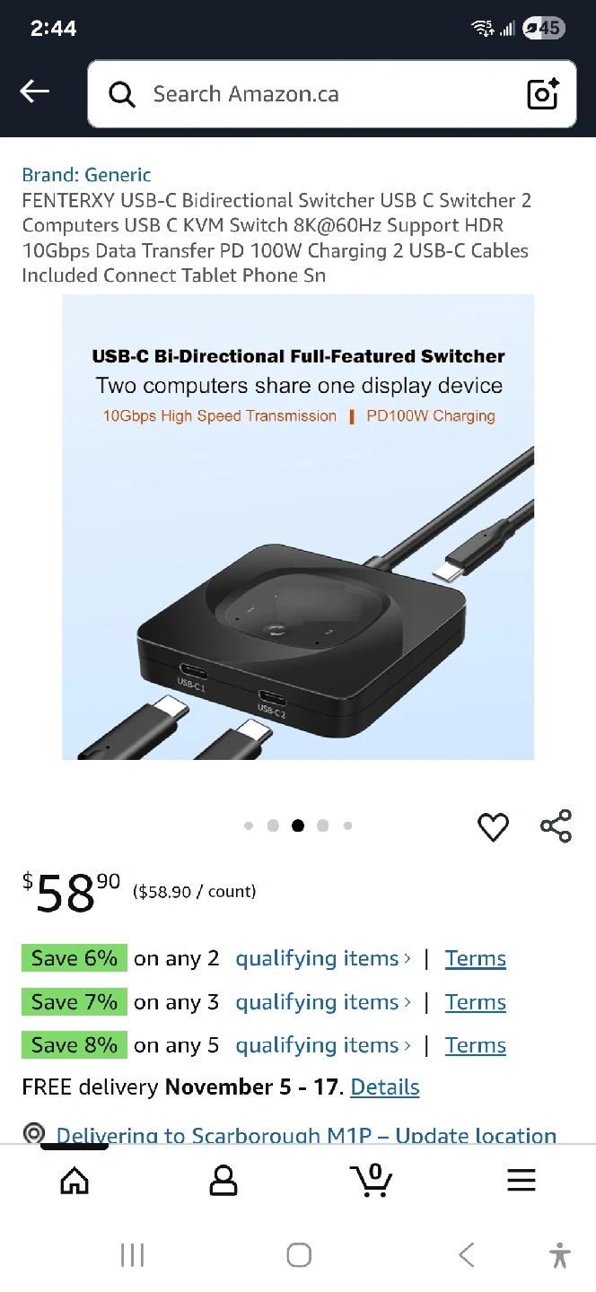 195This USB-C bidirectional full-featured switcher allows two computers to share one display device. It supports 10Gbps high-speed transmission and PD100W charging. It comes with the original box and all included components.