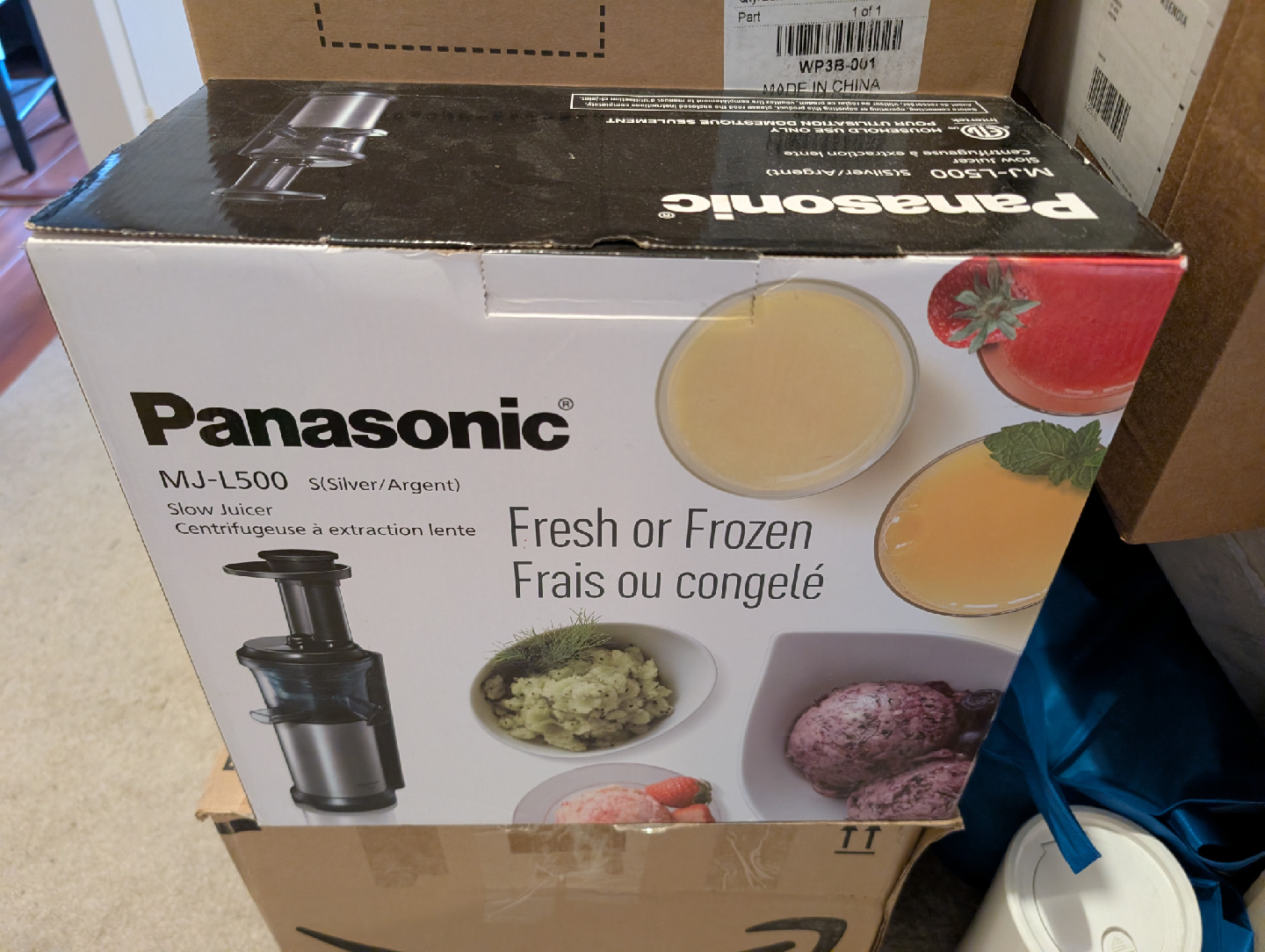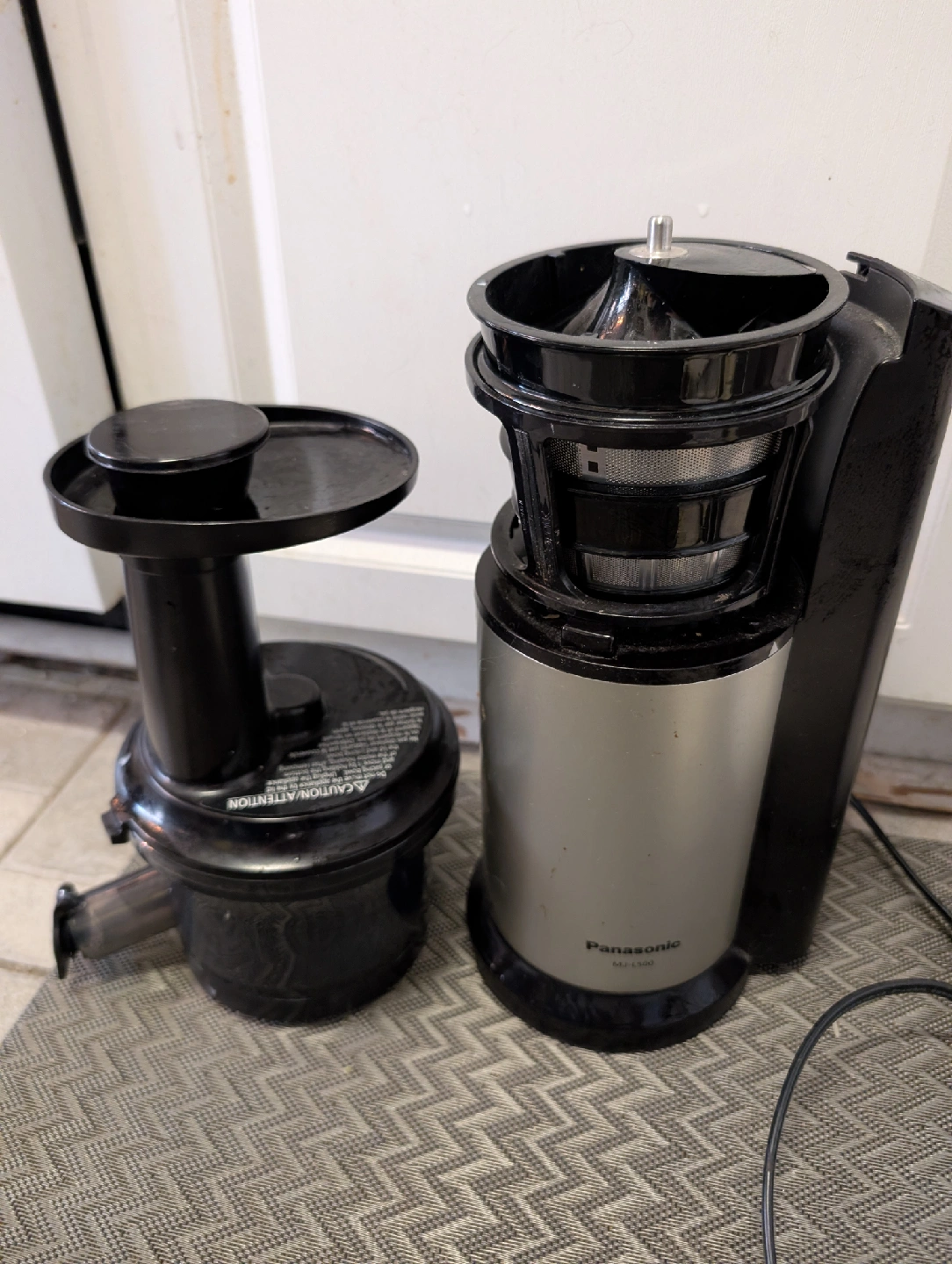 Selling a Panasonic MJ-L500 Slow Juicer in black and silver! It's a centrifugeuse à extraction lente, perfect for making fresh or frozen treats. Get ready to enjoy healthy and delicious juices at home!