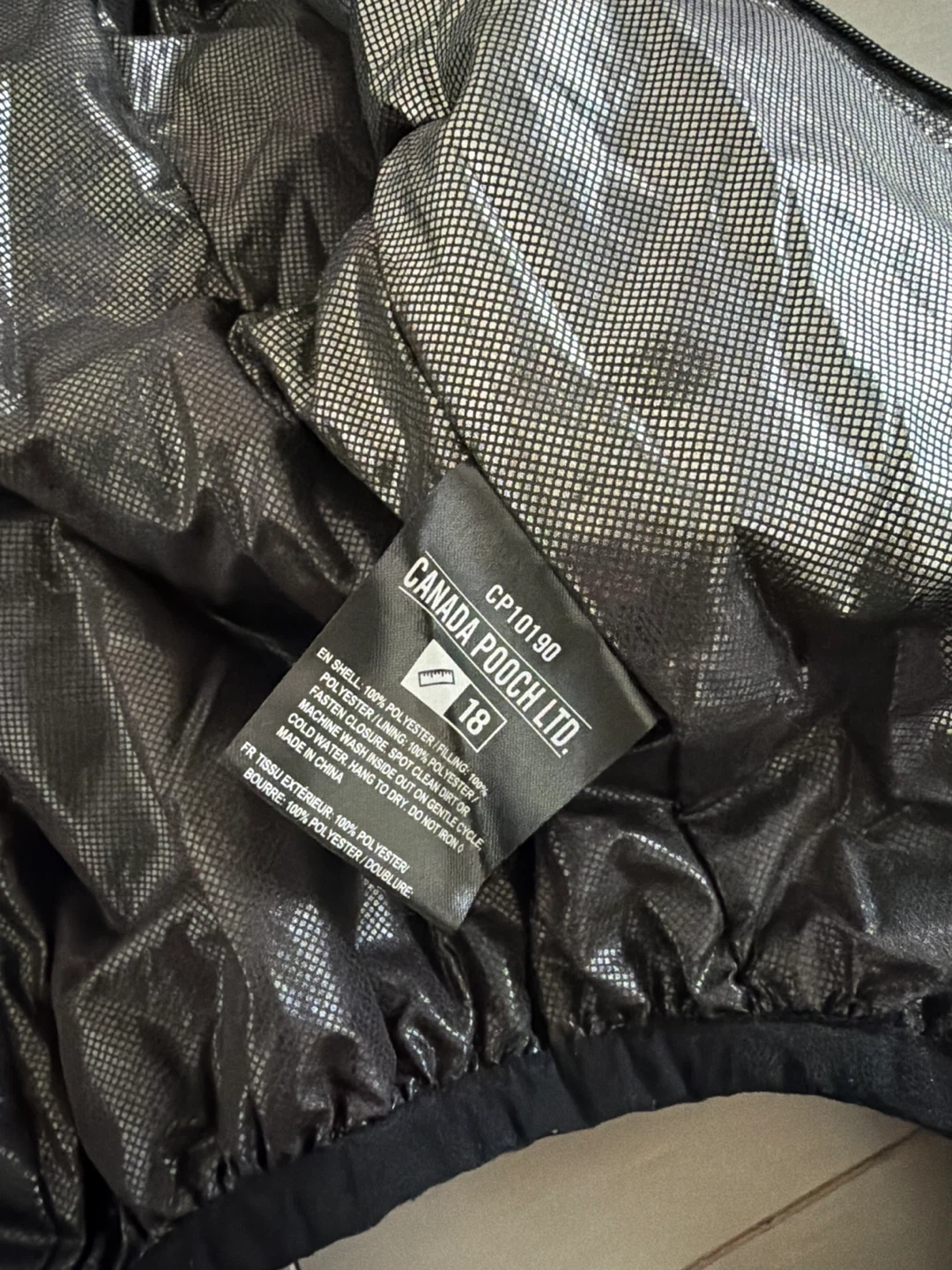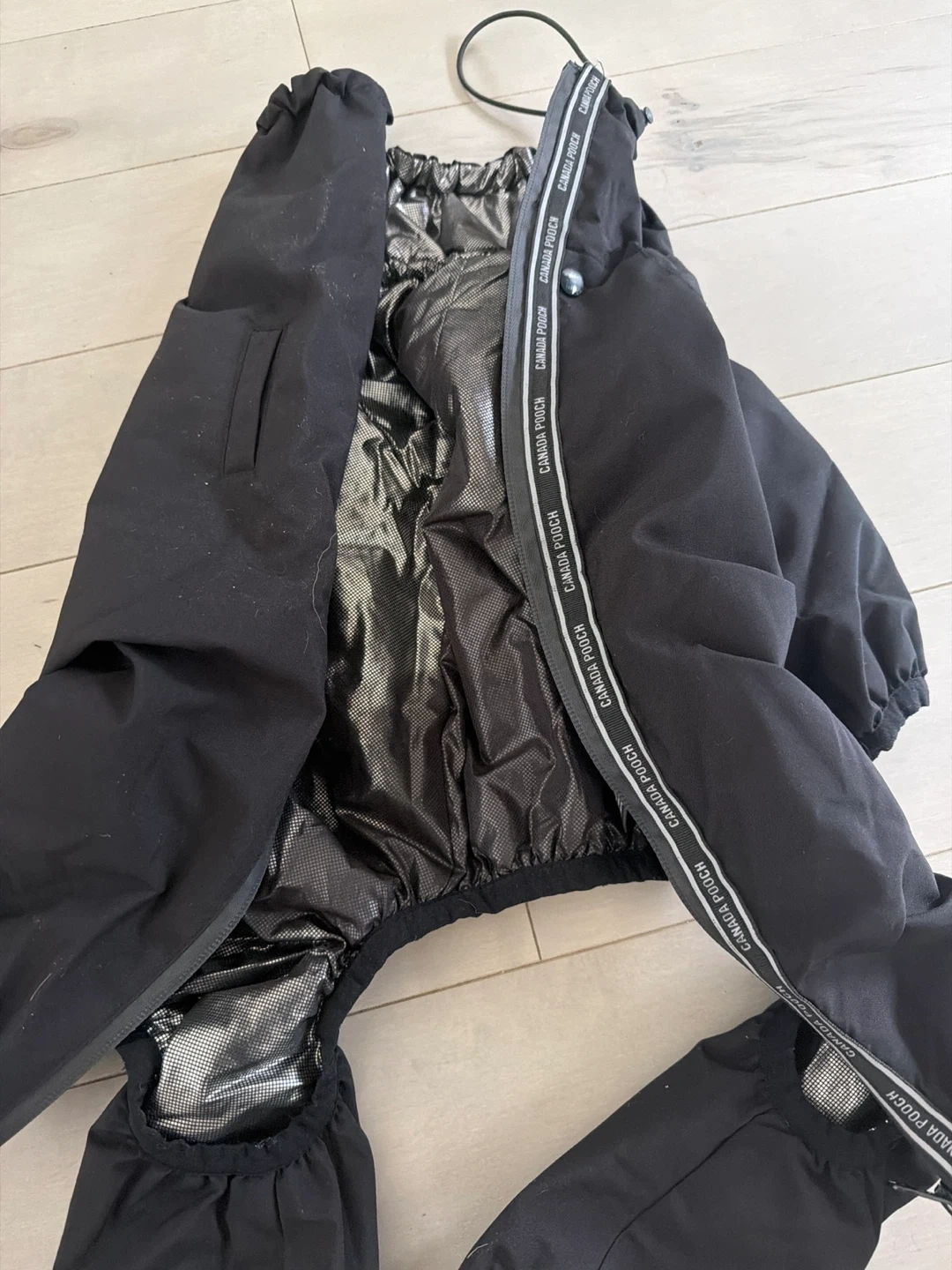 277Keep your furry friend warm this winter with this Canada Pooch snow suit! It's black and size 18. Perfect for those snowy walks!