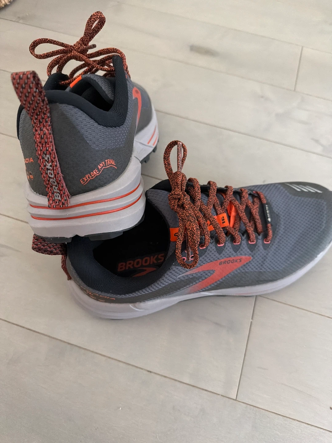 277Selling a pair of Brooks Cascadia 16 trail running shoes in size US 9.5. They're in great shape and ready for your next adventure! These shoes are designed to explore any trail, offering excellent traction and stability. Perfect for hitting the trails around town!
