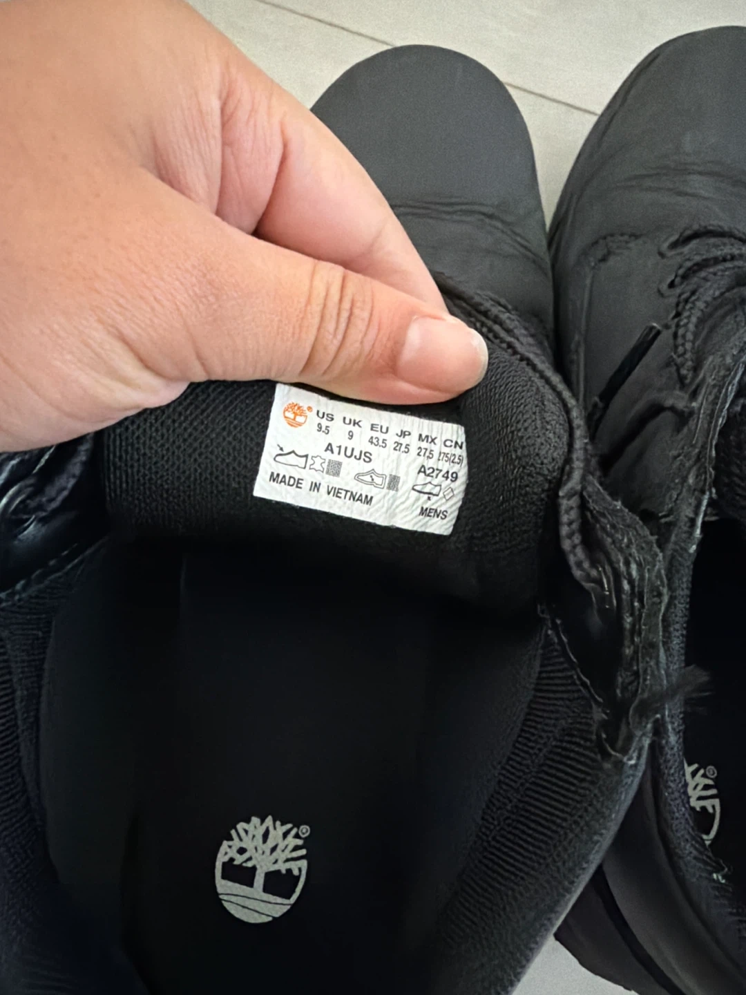 277Selling a pair of Timberland boots in black, size 9.5 US. The style number is A1UJS. They're in good used condition and ready for a new home!