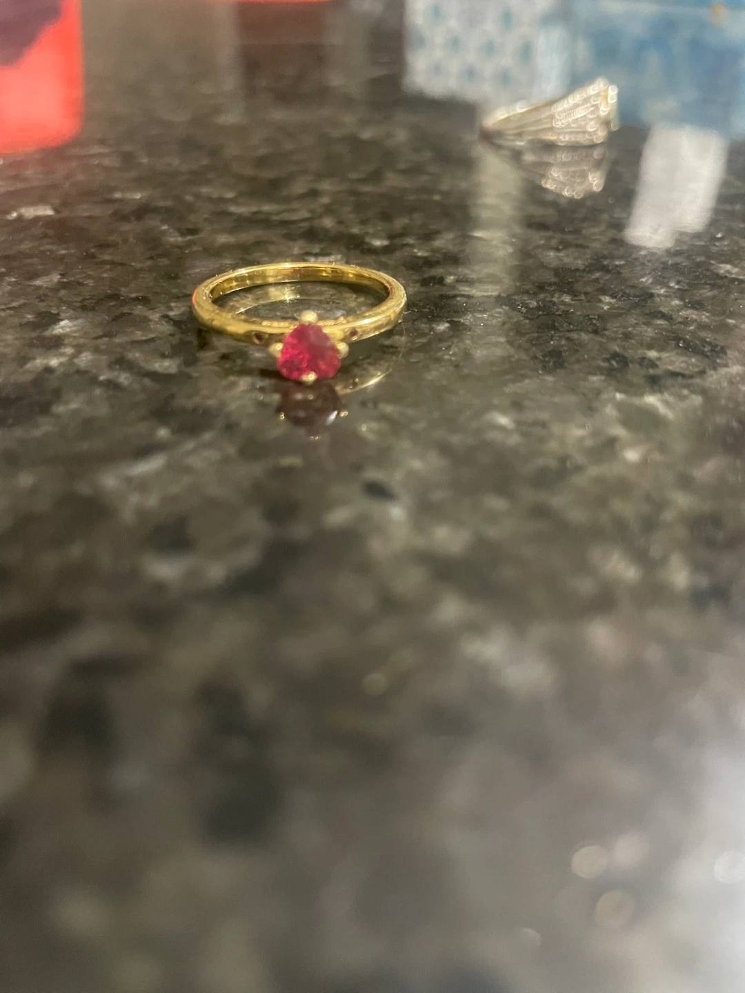 Selling a lovely Pandora ring with a red stone. Great condition pandora love explosion ring. Plated with rose gold. Pick up is in Chappelle