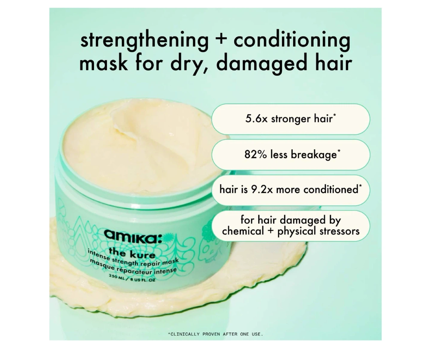 1000+Decluttering for my moving sale! ✨ 📍All prices reduced — quick pickups available near St. George Station, Sheppard West Station, or any stop from Broadview to Victoria Park. ❤️Bundle 5+ items for a discount! 💫 ✅ Great condition, used 1 time ! Selling an Amika The Kure Intense Strength Repair Mask! It's a 50ml size, perfect for trying out or travel. This mask is designed to provide intense strength and repair to your hair. It comes in a cute and colourful tube!