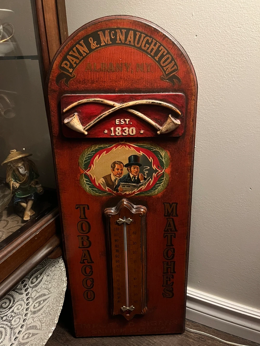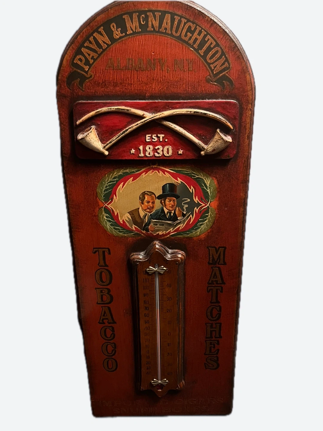 Stunning statement decor. Vintage Payn&McNaughton thermometer. Pipe tobacco propaganda.