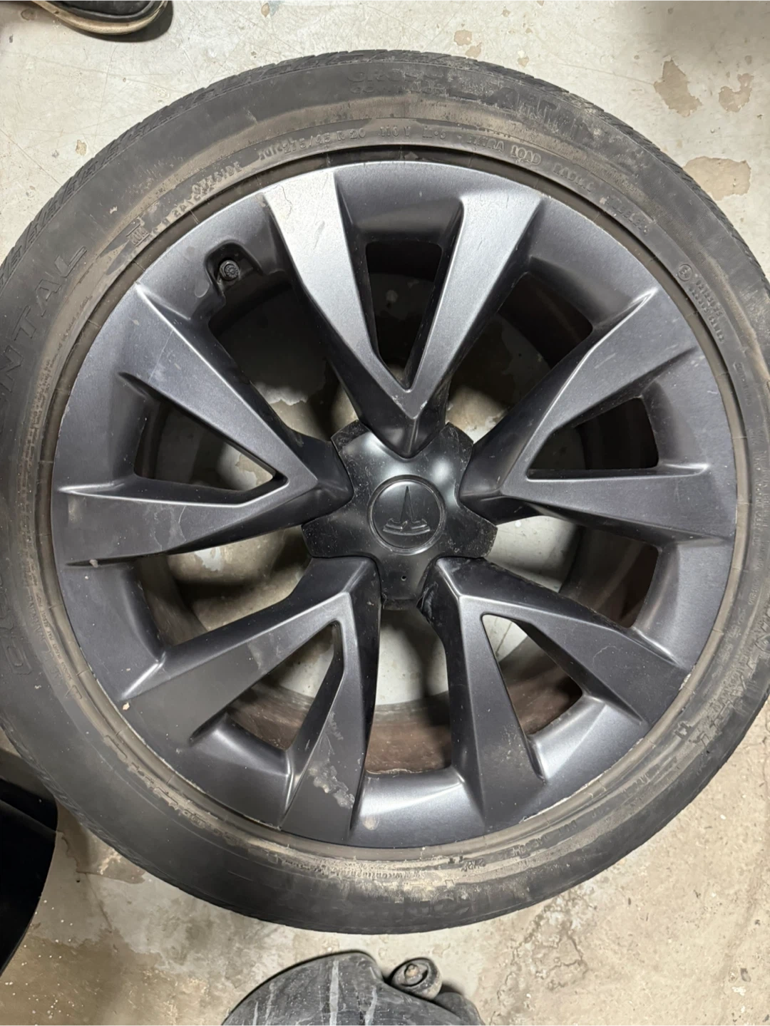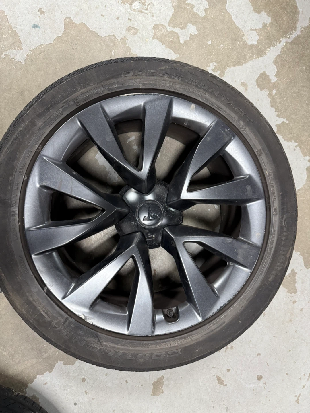 39Selling a Set of original 2022 Tesla model X wheel rim that comes with a tire. It comes with: rims + hub caps + tire pressure sensors + 265 & 275/45/20 continental cross contact tires one rear tire is not good other 3 have 70-80% tread on them