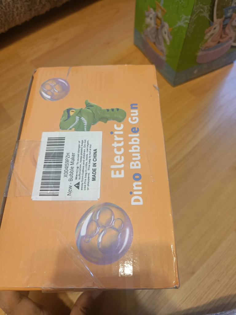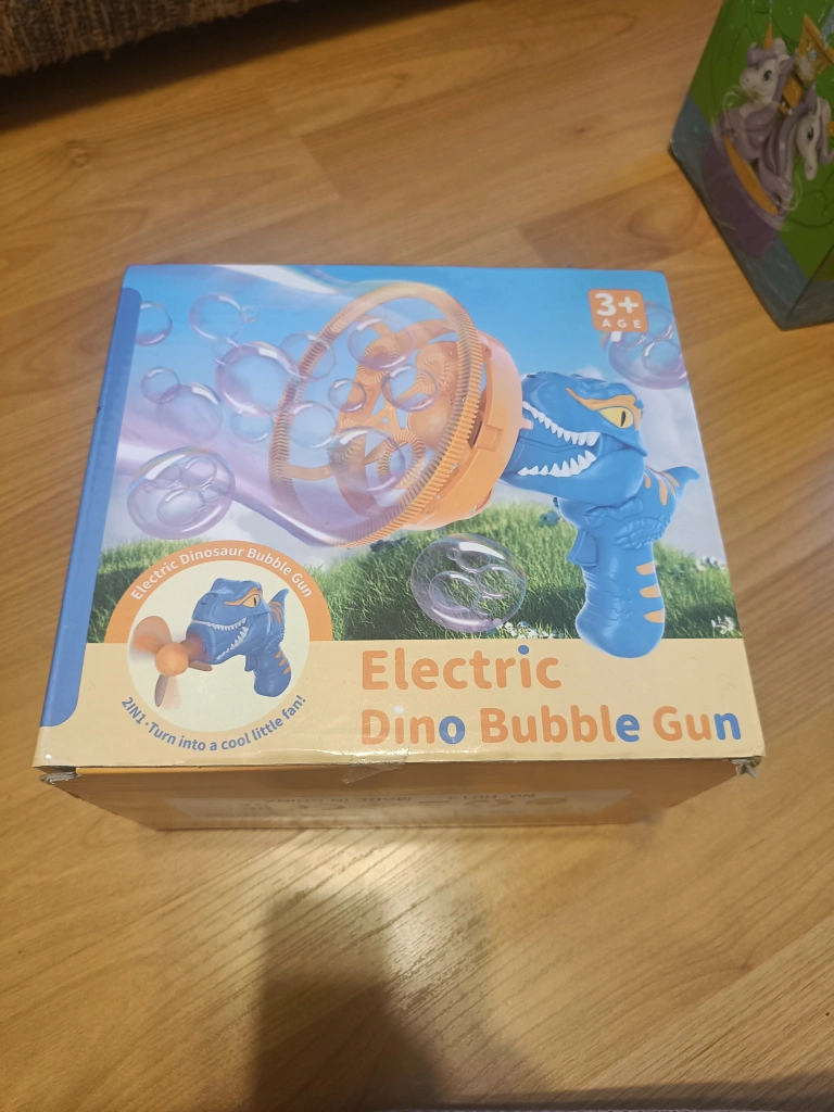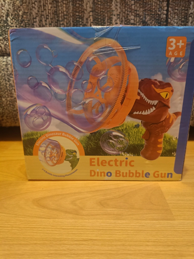 20Selling a brand new Electric Dino Bubble Gun! It's still in its original box and ready for some bubbly fun. Recommended for ages 3+