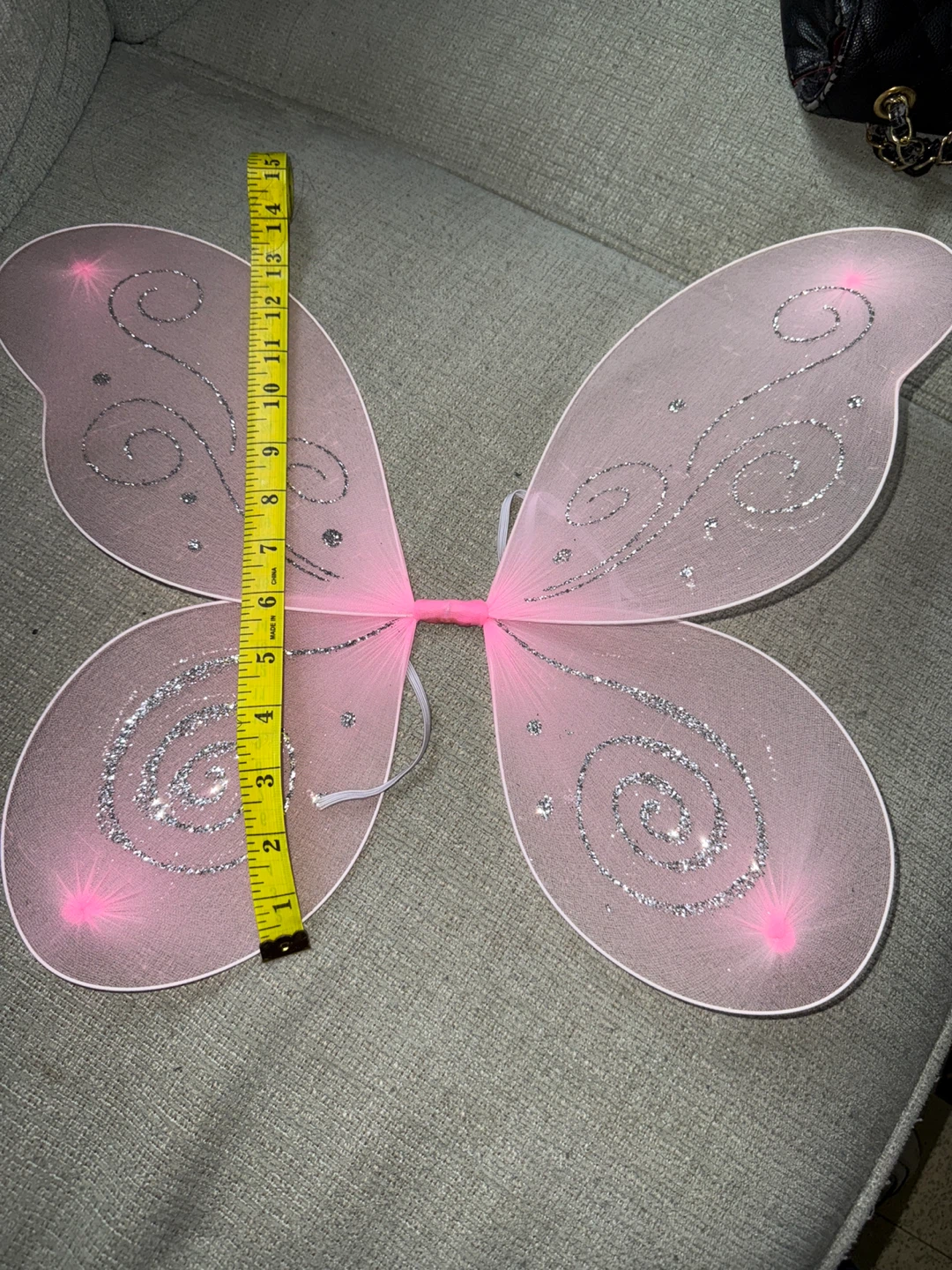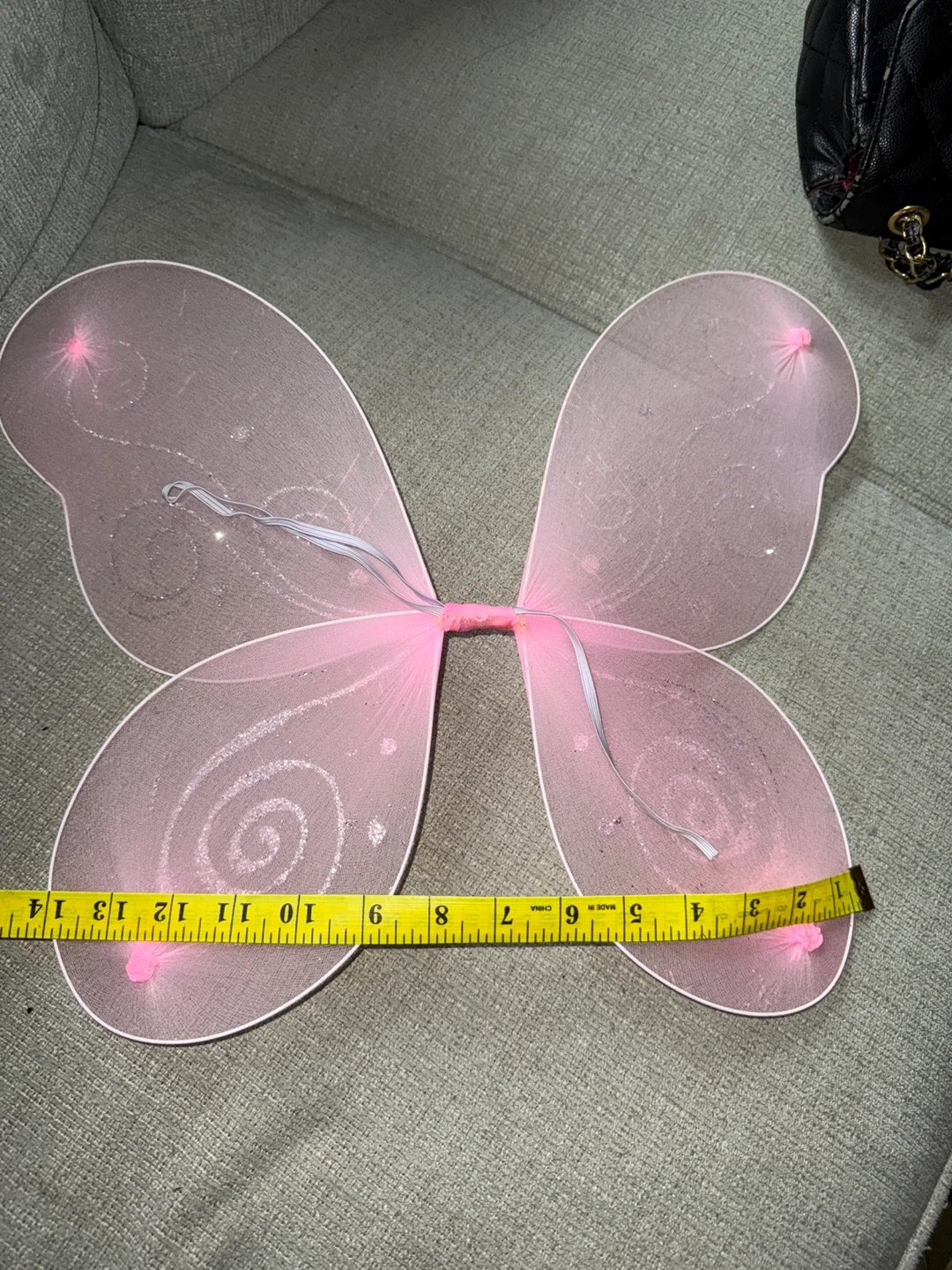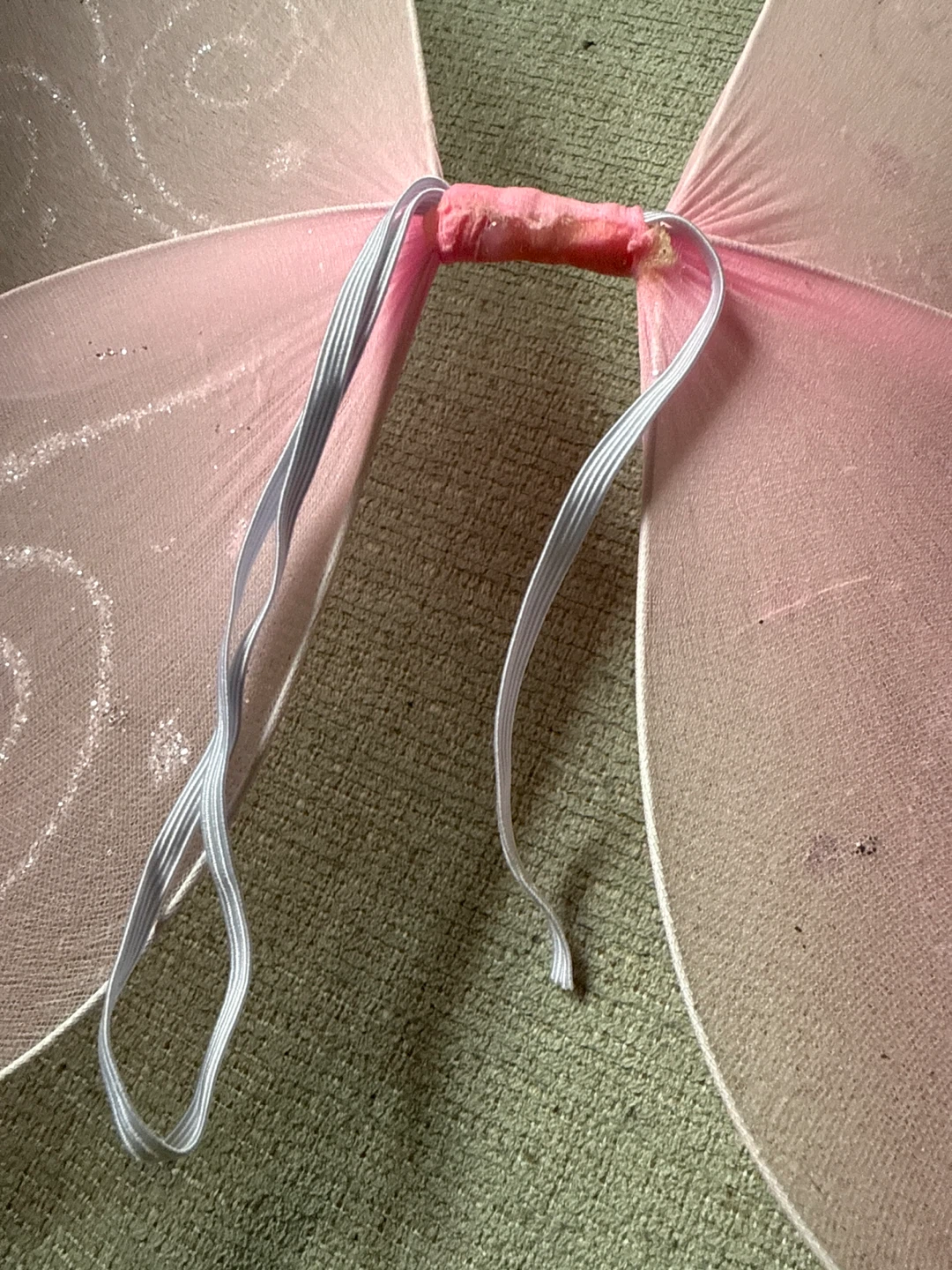These adorable pink fairy wings are perfect for a child's costume or dress-up play! They have glittery details and measure approximately 13 inches across and 14 inches tall. 🦋The elastic needs to be fixed🦋
