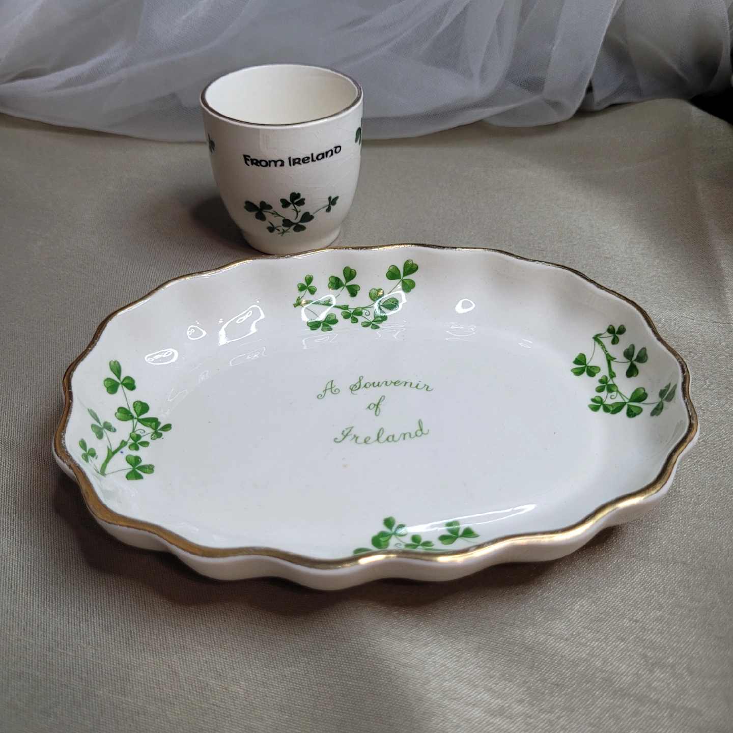 55Vintage Porcelain China Arklow Ireland Souvenir Of Ireland 5 1/4" x 4" Trinket Dish & Toothpick Holder Selling Both Together please see all pictures Please See all my Other Listings, Bundle & Save for a Better Deal! Located in Bradford, May be able to Meet, Shipping Offered at Buyers Expense, Please contact me for more Info & to make arrangements, sorry no holds without an ET, Thank you so much for Looking!