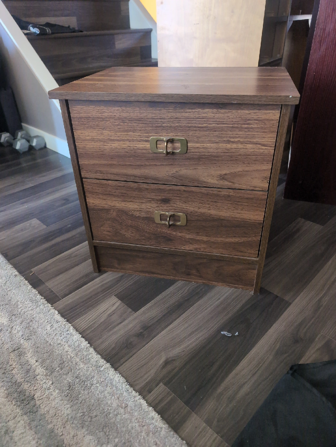 89A lovely wood nightstand featuring two drawers. It's perfect for adding a touch of warmth to your bedroom. The drawers provide convenient storage, and the wood finish complements any decor