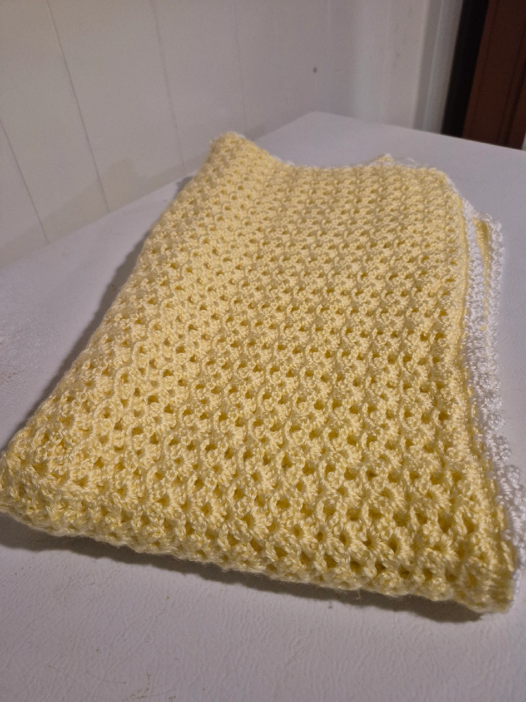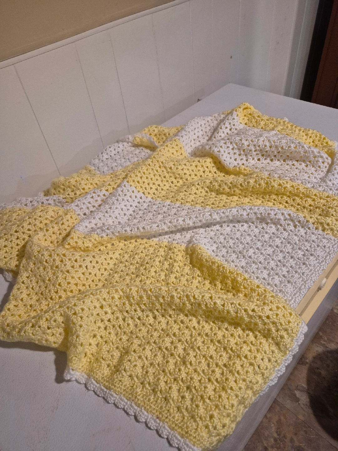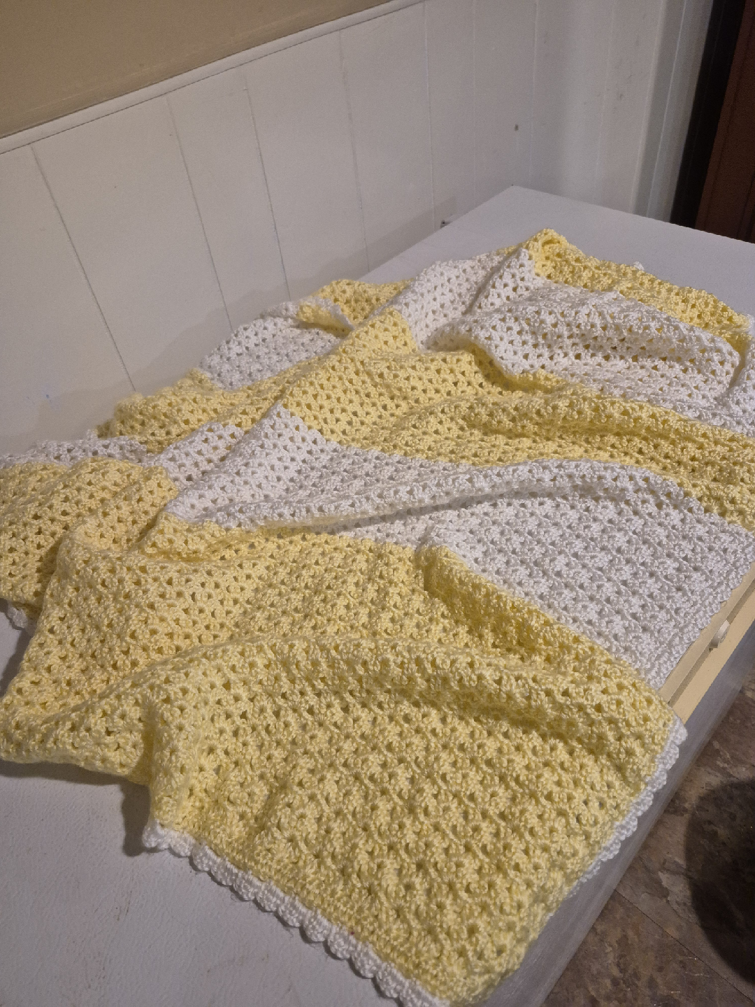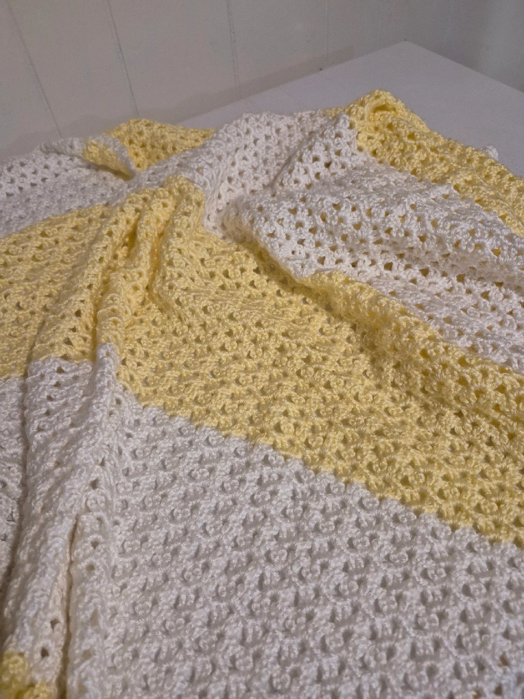 Handmade Crocheted Baby Blanket - Yellow & White