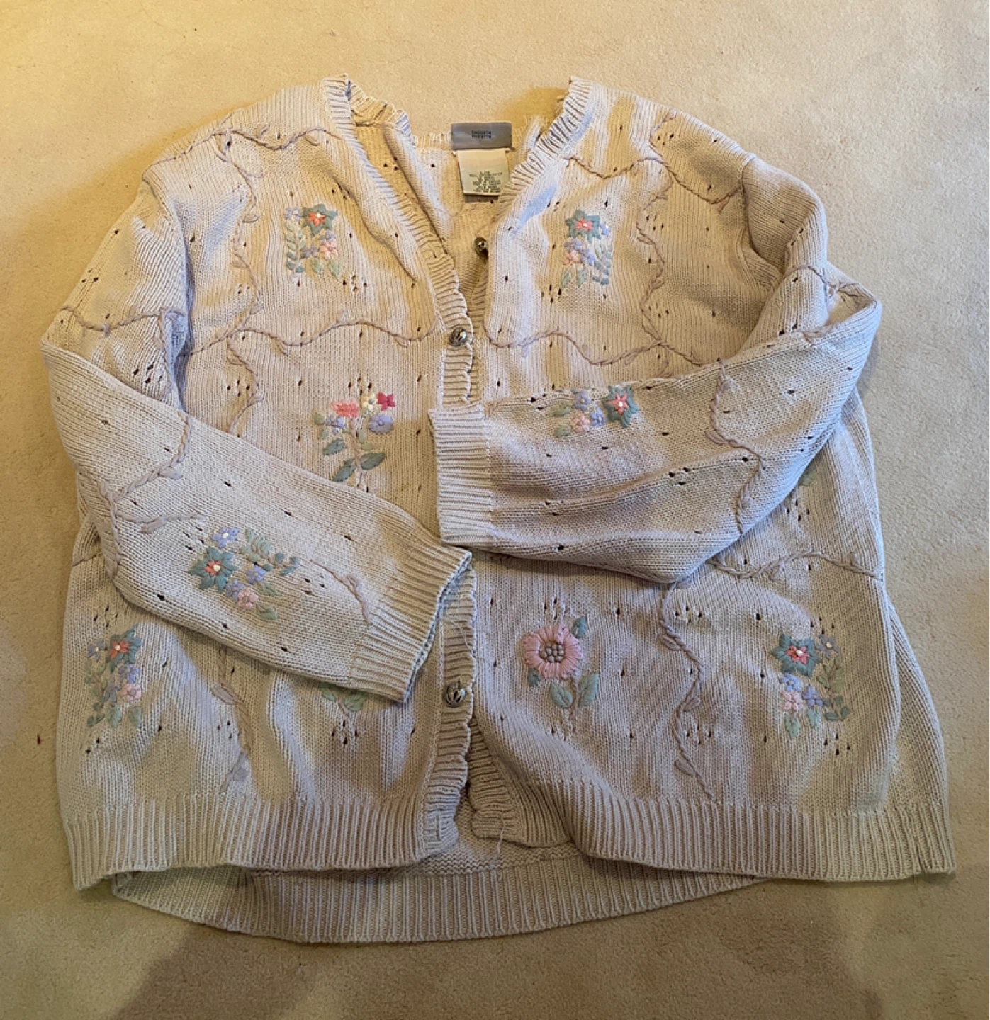 A few loose threads around the sleeve edges and a couple pulled embroidery threads. Overall nice condition and cozy!