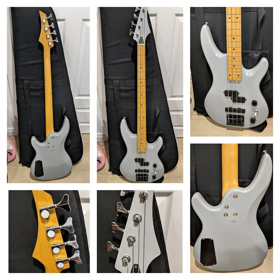 121This bass was repainted by its previous owner. It has maple neck, maple fretboard with 24 frets, precision + jazz pickups, 3-way toggle selector, vol/tone controls. The machine tuners have been replaced with new ones. I will straighten the neck and adjust the string heights to maximize its playability. All of my guitars have a 1-year warranty from the date of purchase. Instruments will be set up properly free of charge and life-time maintenance. I am at Kennedy and Ellesmere in Toronto. Feel free to message if you have any questions!