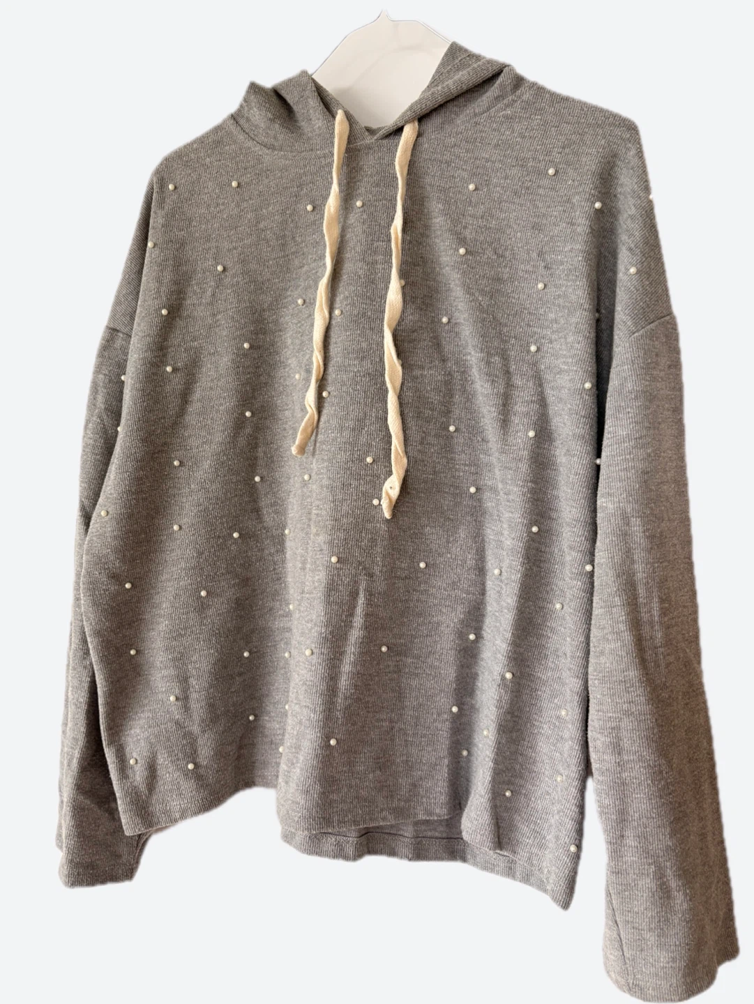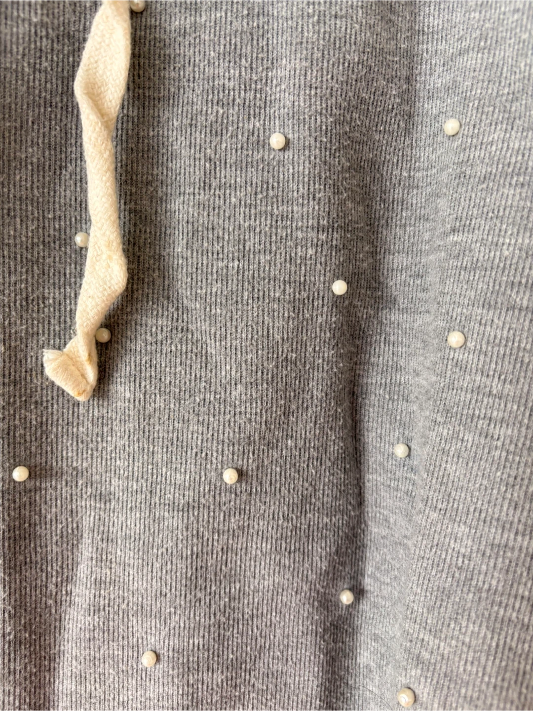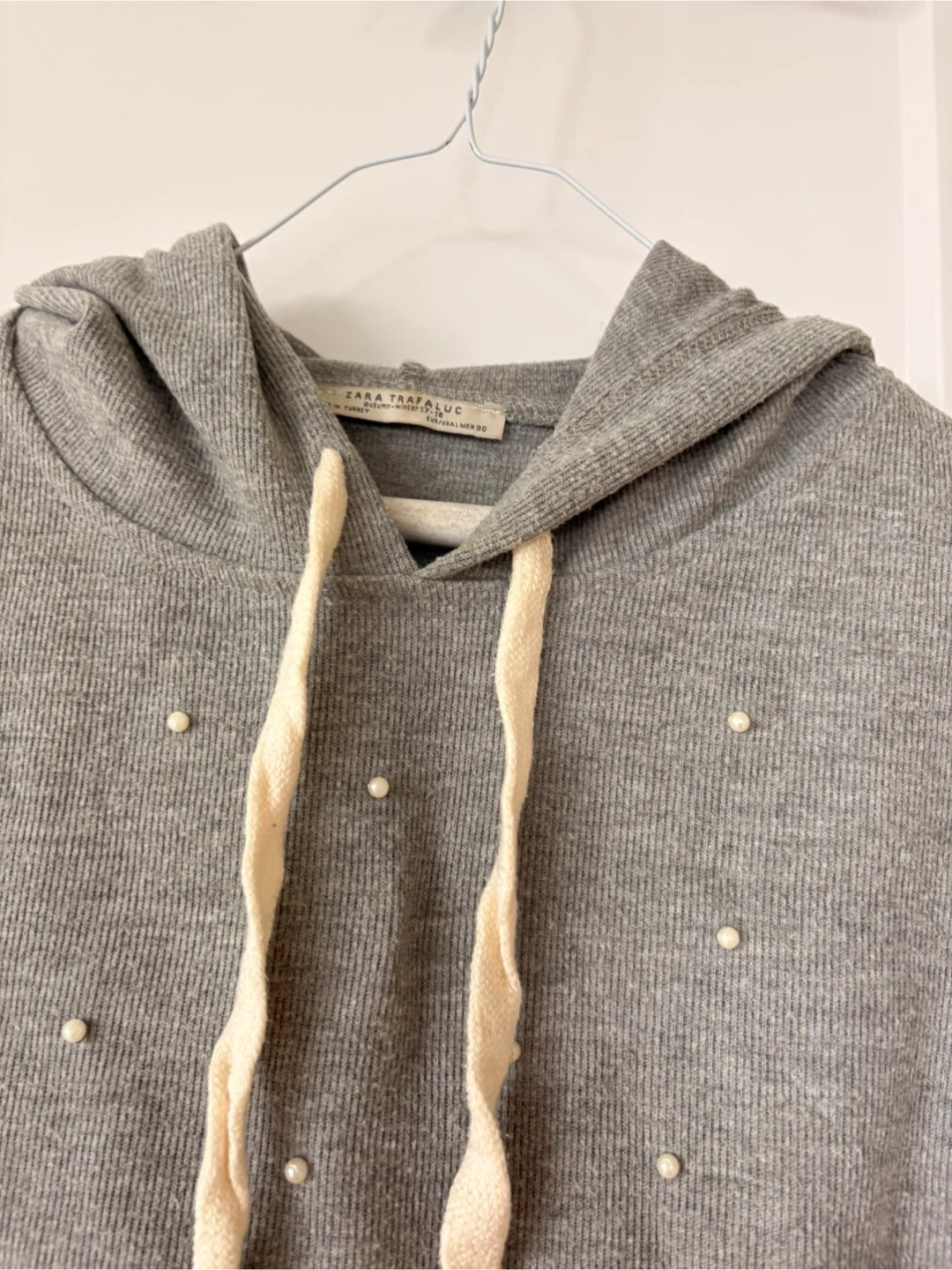 Selling a Zara Trafaluc hoodie in a lovely grey colour. It features cute pearl detailing and a comfortable fit. Perfect for adding a touch of elegance to your casual wear!