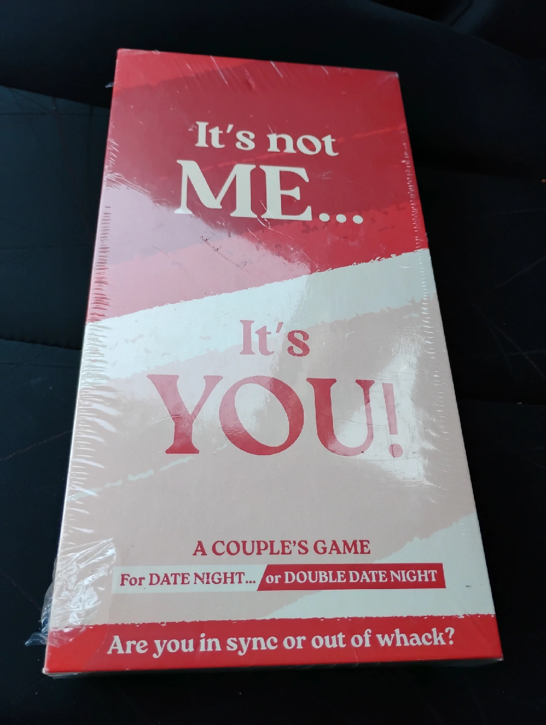 Selling a brand new, sealed copy of 'It's Not Me, It's You!' This is a fun couple's game perfect for date night or double date night! Are you in sync or out of whack? Includes 160 question cards, 24 score elements, 8 name boards, and 1 dry-erase marker