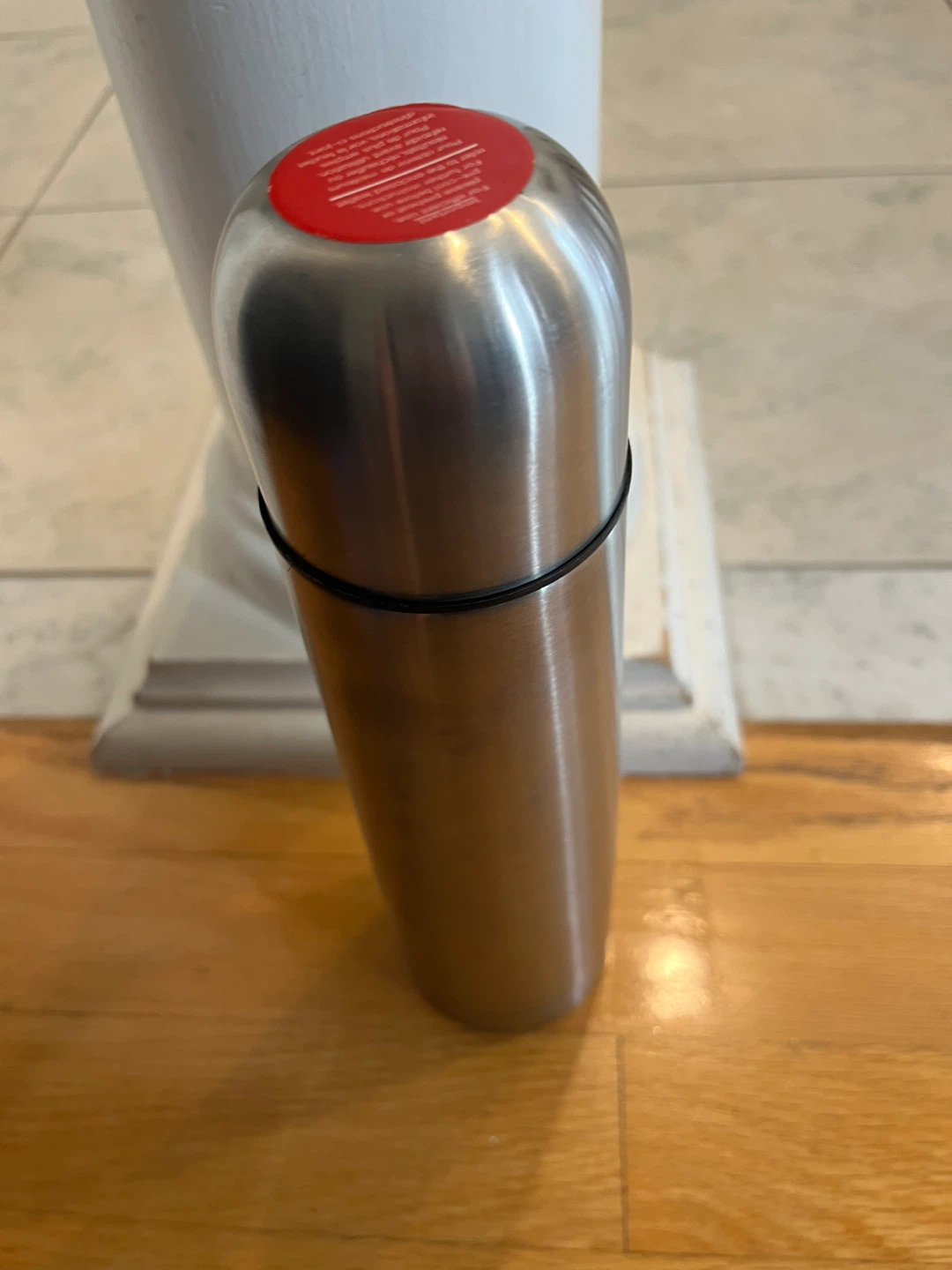 Selling a stainless steel thermal bottle. It's in good condition and ready to keep your drinks hot or cold! It has a twist-open top for easy pouring and a sleek design.