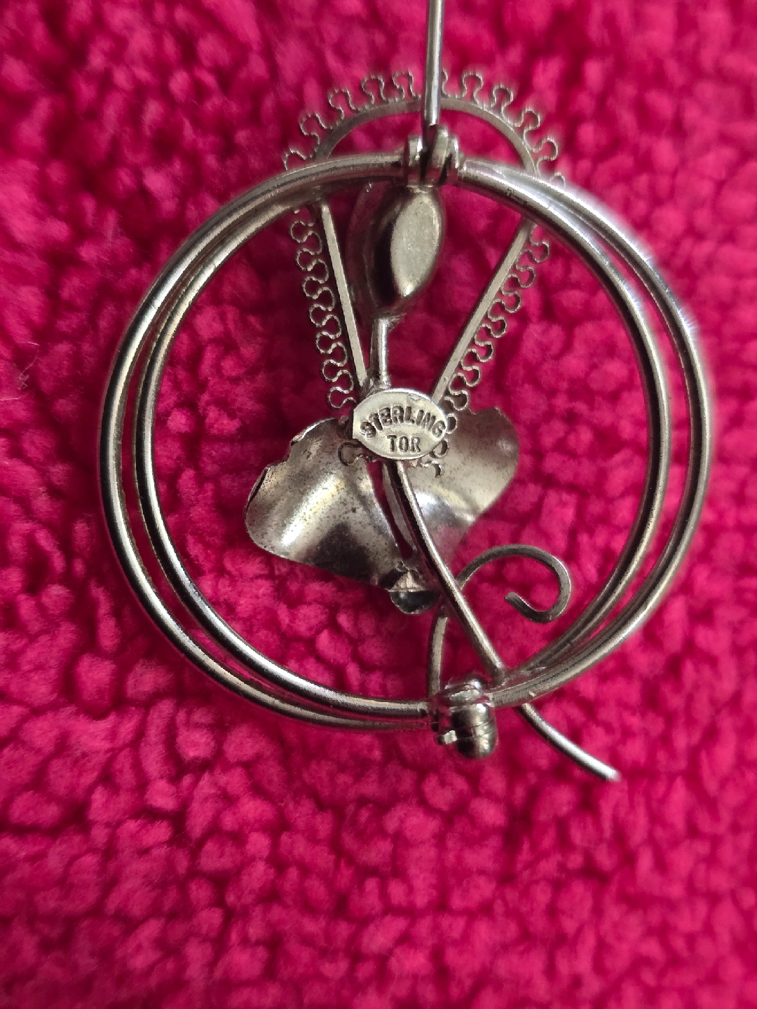 Vintage Sterling Silver Signed Tor Flower Brooch Pin
