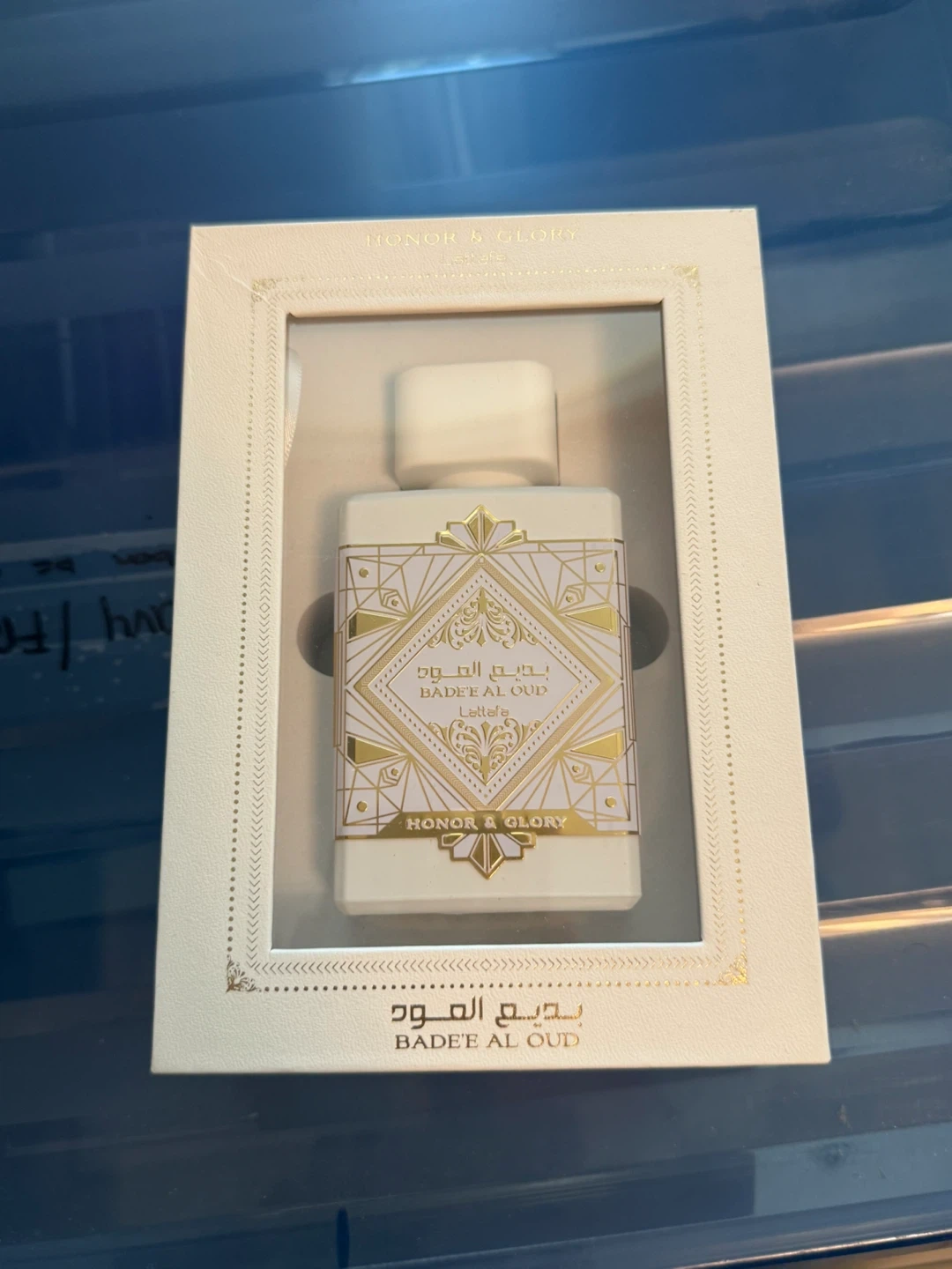 Selling a bottle of Badee Al Oud Honor & Glory perfume. It comes in its original box. The scent has top notes of pineapple brûlée, heart notes of turmeric, cinnamon, black pepper, and benzoin, and base notes of vanilla, cashmeran, sandalwood, and moss