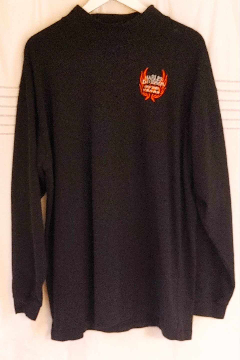 Mens black Harley-Davidson long sleeve shirt in size XL. 100% cotton. Good condition. No rips or stains. Smoke free home pick up Mt.Brydges cash only.