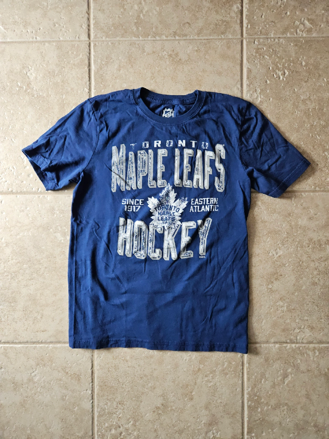 Kids Size M (10/12) Toronto Maple Leafs T-Shirt. In excellent used condition. Decal is supposed to look faded/distressed.