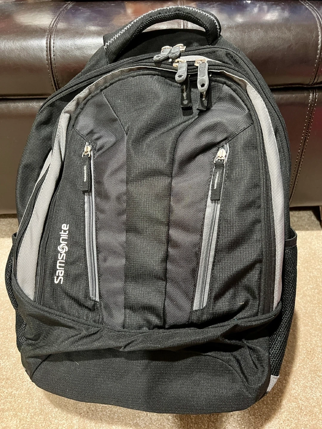 Selling a pristine condition black and grey Samsonite laptop backpack. It has two layers for storage, side and front pockets - holds lots! Perfect for travel, work and school.