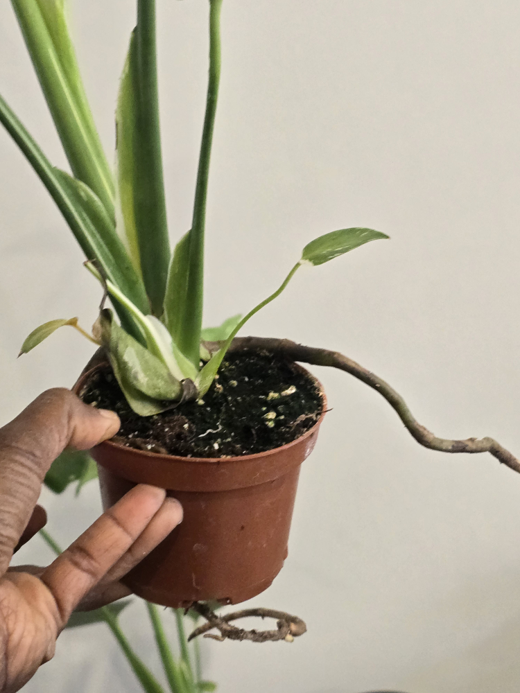 Selling a beautiful Monstera Thai Constellation plant! It's a lovely addition to any indoor space. The leaves have a unique speckled pattern that makes it stand out