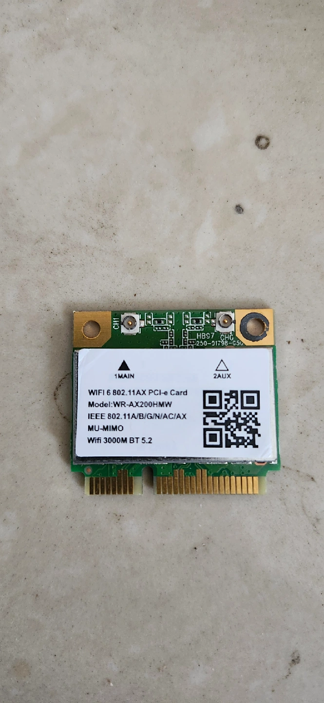 195Selling a Wifi 6 802.11AX PCI-e Card. Model number is WR-AX200HMW. It supports IEEE 802.11A/B/G/N/AC/AX and MU-MIMO. Wifi 3000M BT 5.2