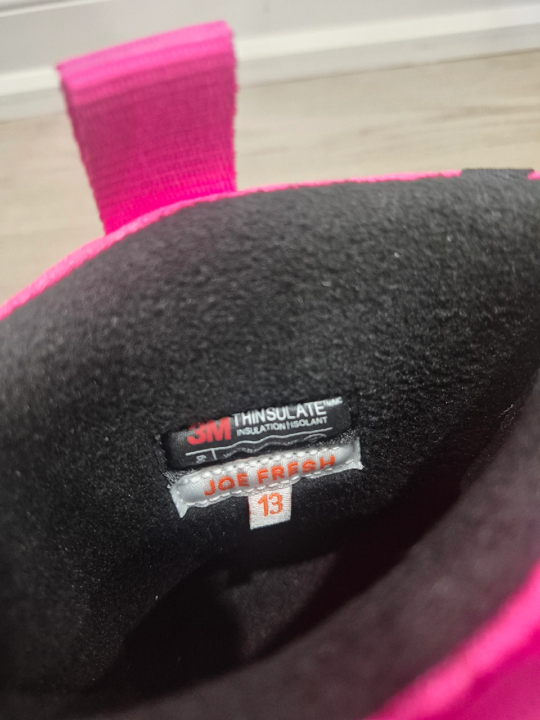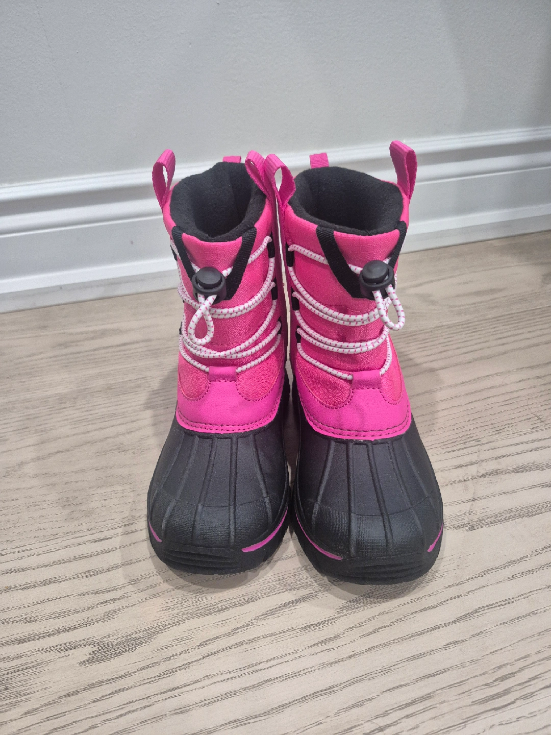 Selling a pair of Joe Fresh winter boots in a vibrant pink and black colour combo! They're a size 13 and ready to keep your little one's feet warm and dry this winter season