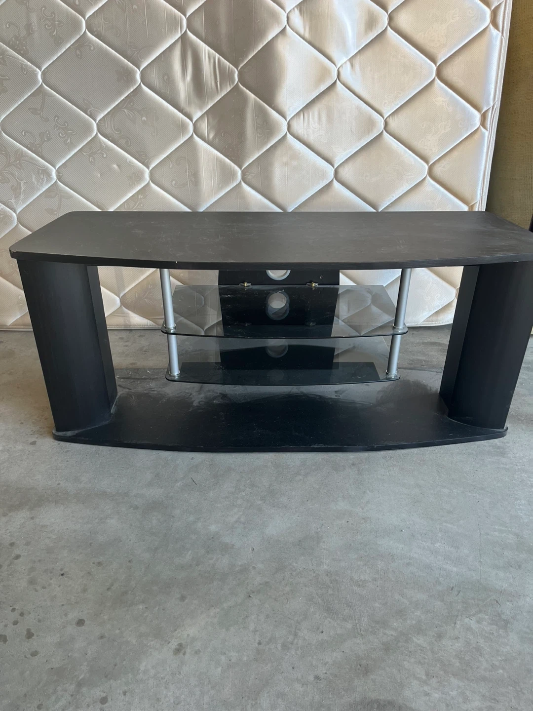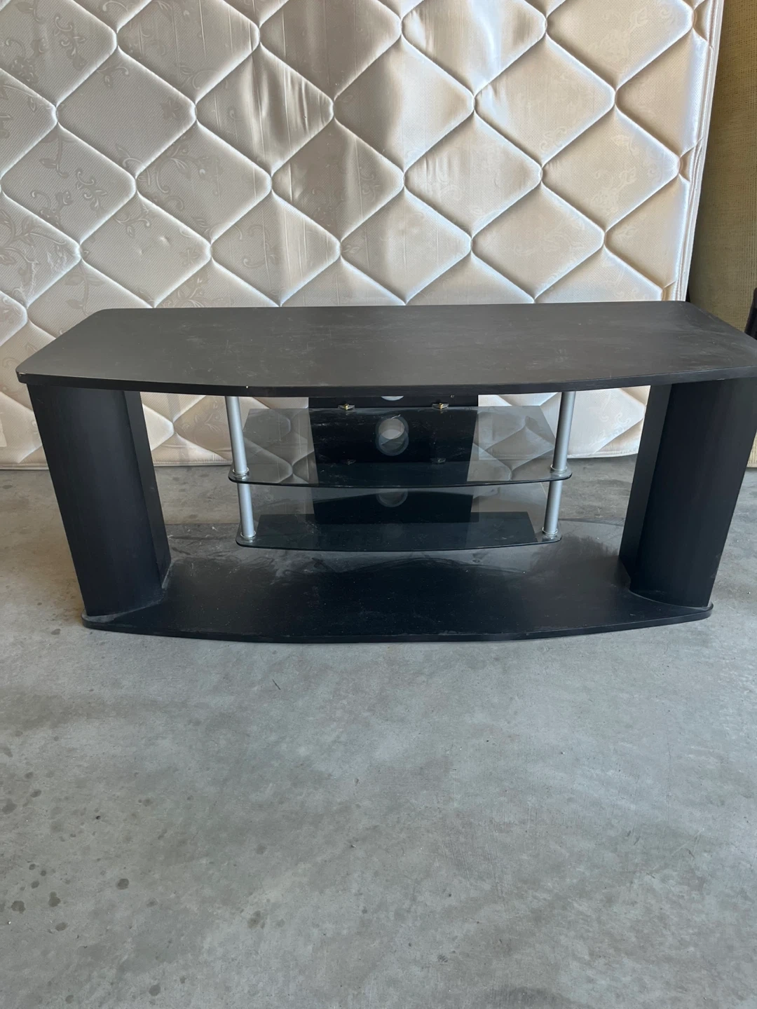 Selling a black TV stand that's perfect for your living room setup! It features sturdy construction and stylish glass shelves for your media devices or decor. It's in great condition and ready for a new home!