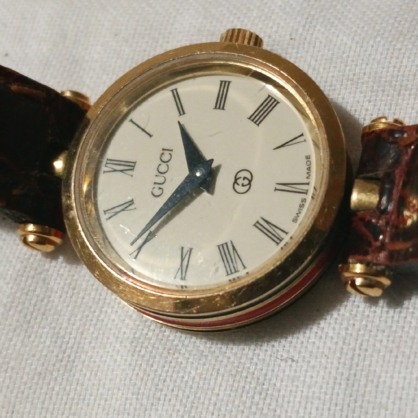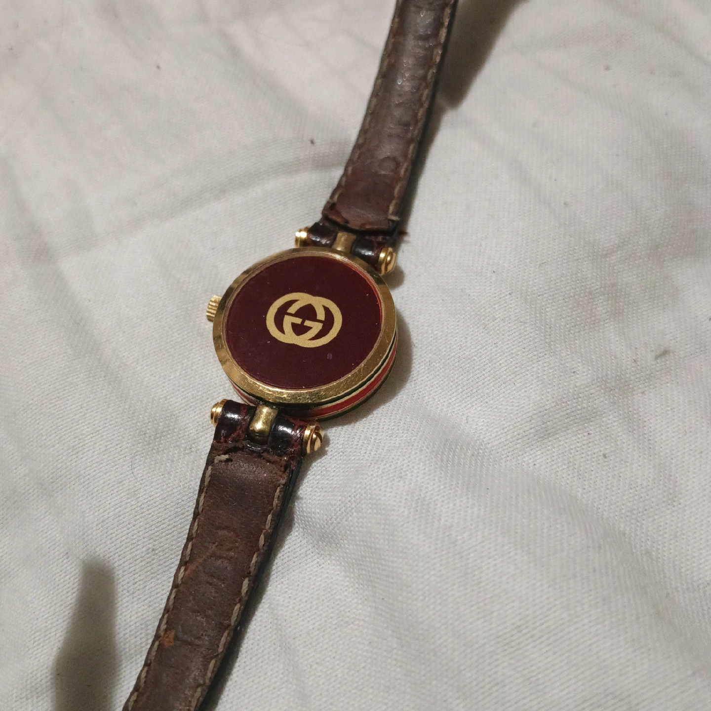 Selling a classic vintage Gucci watch with original brown leather strap. New closure and battery required. Perfect for someone who appreciates vintage style!