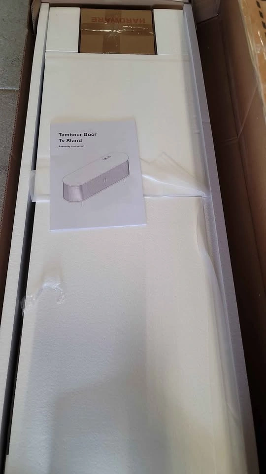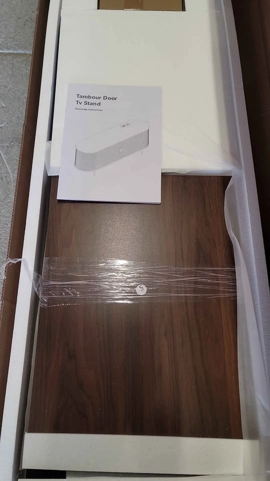 40Modern curved corners and a sleek silhouette elevate any living space. Made from A-grade FSC-certified engineered wood with real veneer for smooth finishes and sturdy construction Six spacious compartments with an adjustable shelf accommodate electronics and accessories. Stylish tambour sliding doors and built-in cable management keep things tidy and organized. Sturdy steel legs and solid construction support TVs from 32’’ to 60’’ for versatile use. Number F14
