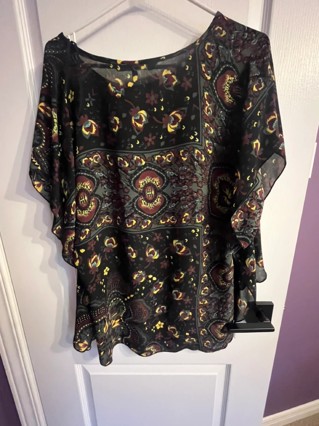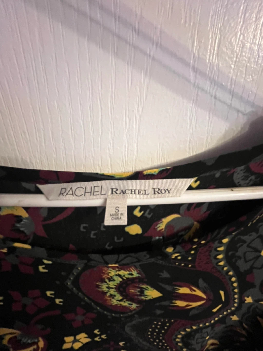 Selling a Rachel Rachel Roy blouse in size small. It features a beautiful floral pattern with colours of black, red, and yellow. Pet and smoke free home. Pick up in Stittsville.