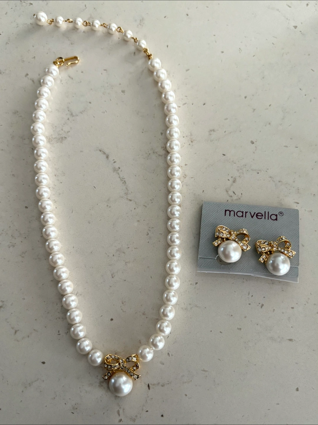 Selling a lovely Marvella faux pearl necklace and earring set.