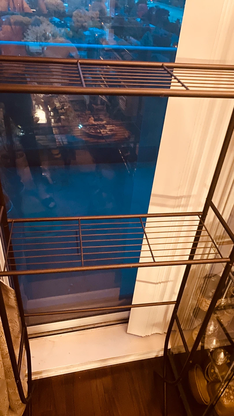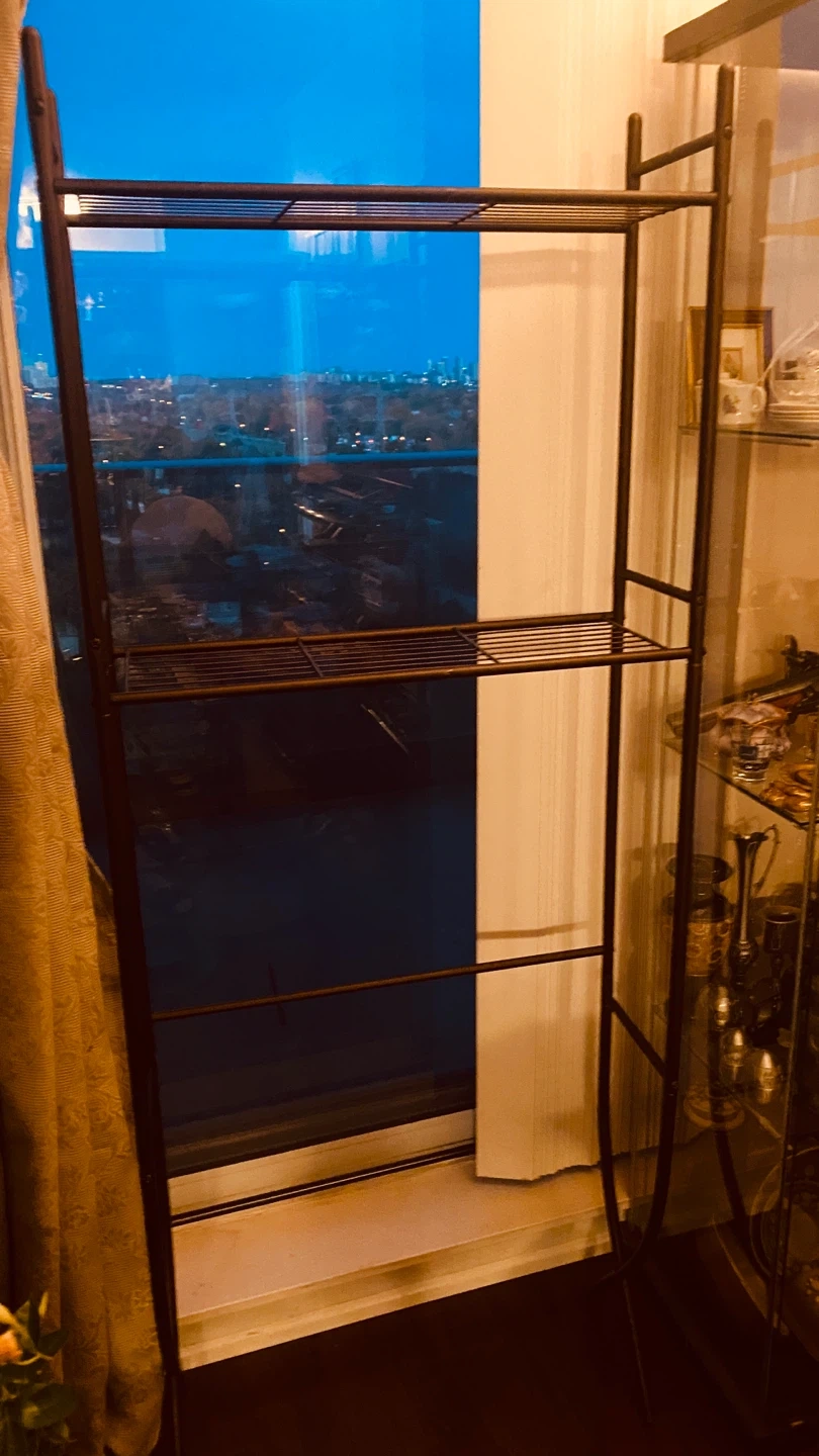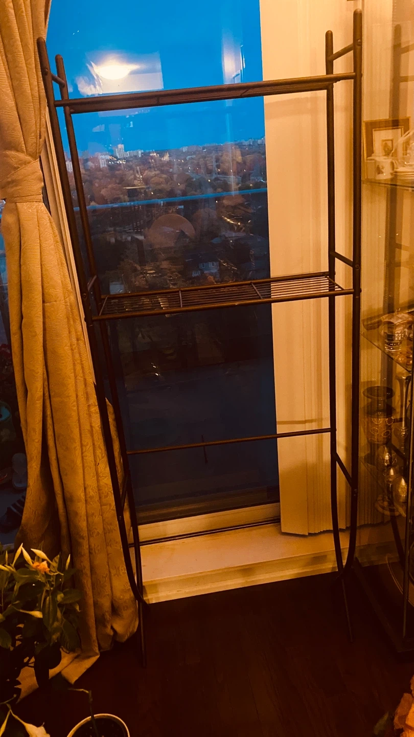 Here's a metal plant stand shelf, perfect for adding some greenery to your space! It has multiple tiers, providing ample space for your plants or other decorative items. The dark metal finish gives it a sleek and modern look that will complement any decor