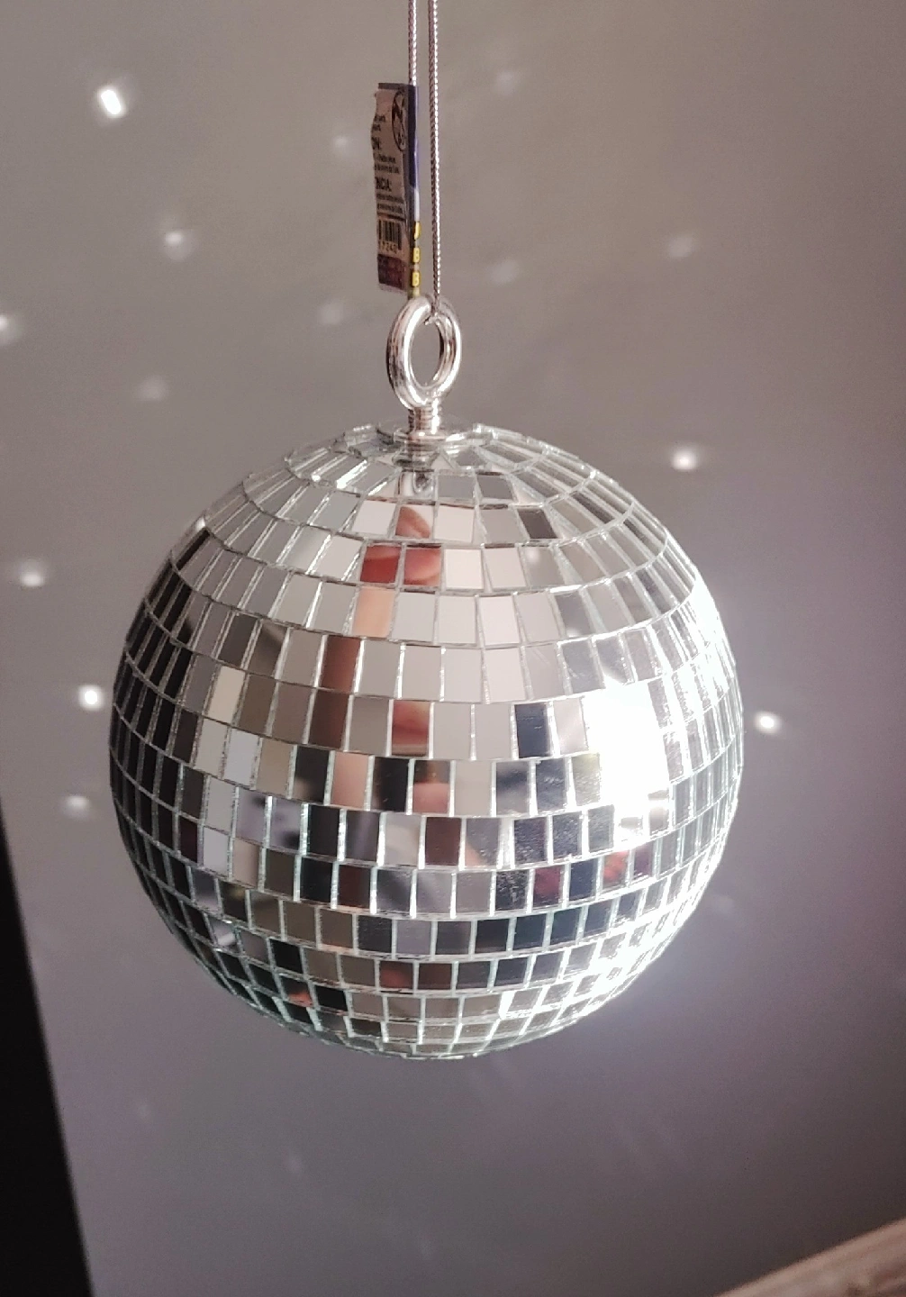 63Add some sparkle to your space with this fun silver disco ball! Perfect for parties or just adding a bit of shimmer to any room. it's brand new and ready to light up your life