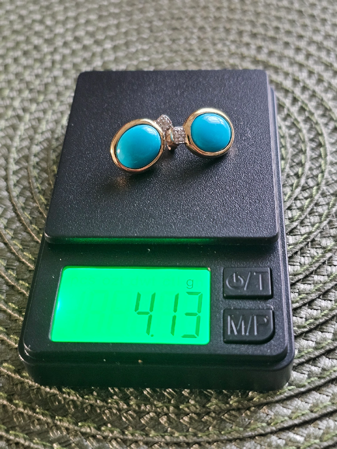 Buy & SellTurquoise &14K Gold Earrings 4.13gTurquoise &14K Gold Earrings 4.13g$350Beautiful pair of turquoise and 14K gold earrings. They come in a box and are in great condition!ConditionNewWHERE TO MEETRexdaleView MapSELLERverifiedSean GW Humber1000+94 reviews1 chats·0 favorites·64 views