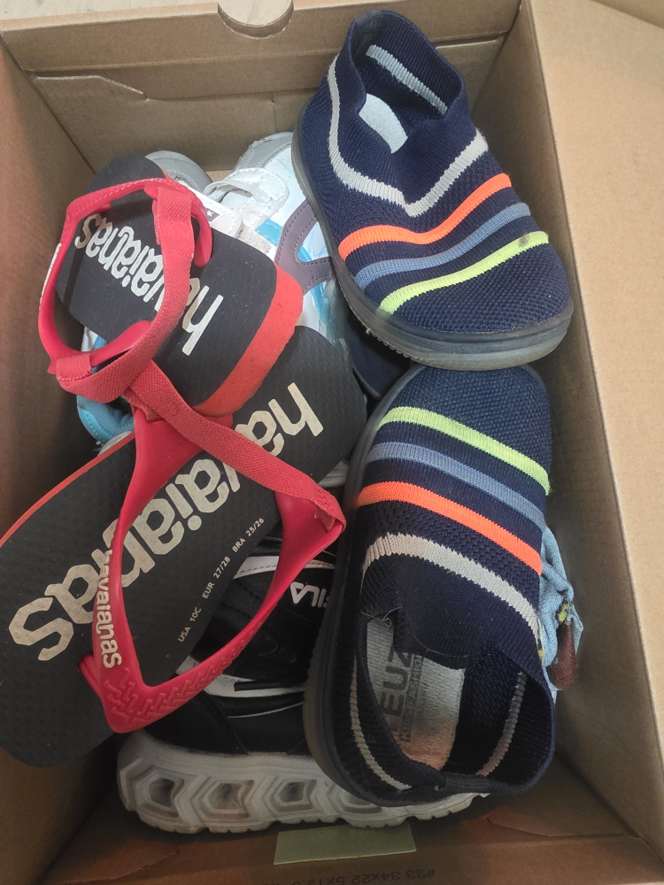 Selling a bundle of mixed kids' footwear including Havaianas flip-flops and other assorted shoes. Sizes vary. Great for a growing child!