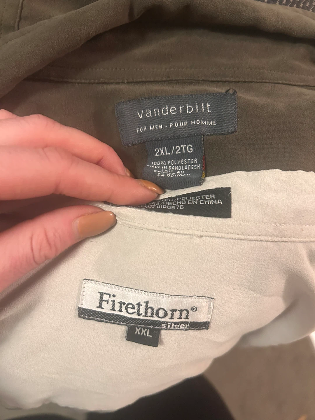 Two like new 2XL button up shirts with collar. Bought for brother but he didn’t like the soft suede like texture. Maybe you do?