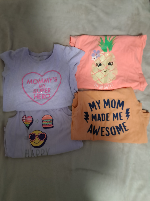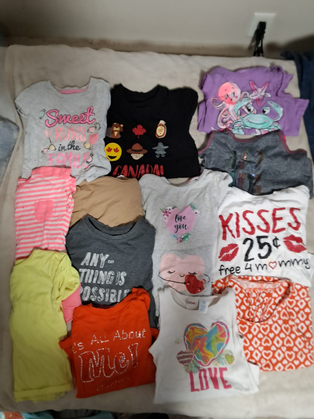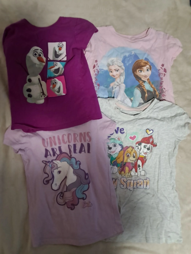 Selling a large lot of girls' graphic t-shirts, size 4T-6. Includes various popular characters and designs such as Frozen, Paw Patrol, Baby Shark, Peppa Pig, and more! All in good condition and ready for a new home. Perfect for everyday wear!